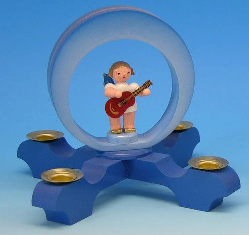 Adventsleuchter für 4 Kerzen, blau mit Engel Gemütliche Adventszeit! Handgearbeiteter Adventsleuchter mit einem hübschen, handbemalten Engel mit Gitarre in der Mitte. Das ist echte Handwerkskunst aus dem Erzgebirge. Traditionell und mit viel Liebe zum Detail gearbeitet, verschönert er mit seinem ganz besonderen Charme jedes Zimmer. Einfach etwas Besonderes für die schönste Zeit des Jahres. Bereits in der 4. Generation fertigt der traditionsreiche Meisterbetrieb Uhlig nun schon orginal erzgebirgische Volkskunst, die zwischenzeitlich weit über die Landesgrenzen hinaus bekannt ist. Liebevoll gestaltet, mit größtem handwerklichem Geschick hergestellt und natürlich ausnahmslos handbemalt! Egal ob Sie sich für einen Schwibbogen , eine Weihnachtspyramide oder einen der vielen Dekorationsartikel aus Holz entscheiden. Mit Produkten aus der Kunstgewerbeschmiede Uhlig, erwerben Sie sich kleine Schätze der traditionellen Erzgebirgskunst, die mit ihrem Charme eine ganz besondere Atmosphäre schaffen. Holen Sie sich unvergleichliche Weihnachtsstimmung direkt zu sich nach Hause und erfreuen sich an meisterlicher Handwerkskunst aus dem Erzgebirge. Größe: 145 x 145 x 130 mm, Material: Holz