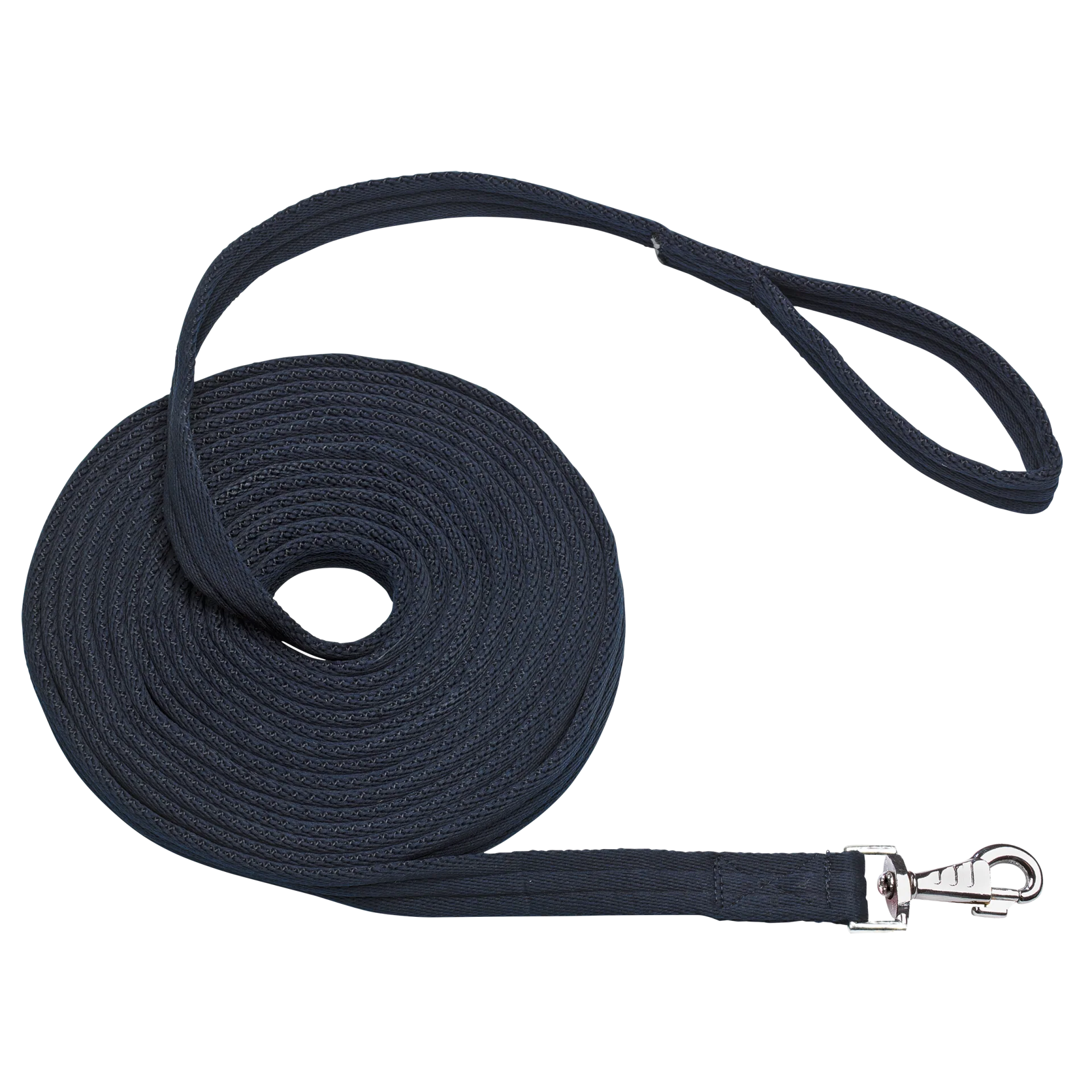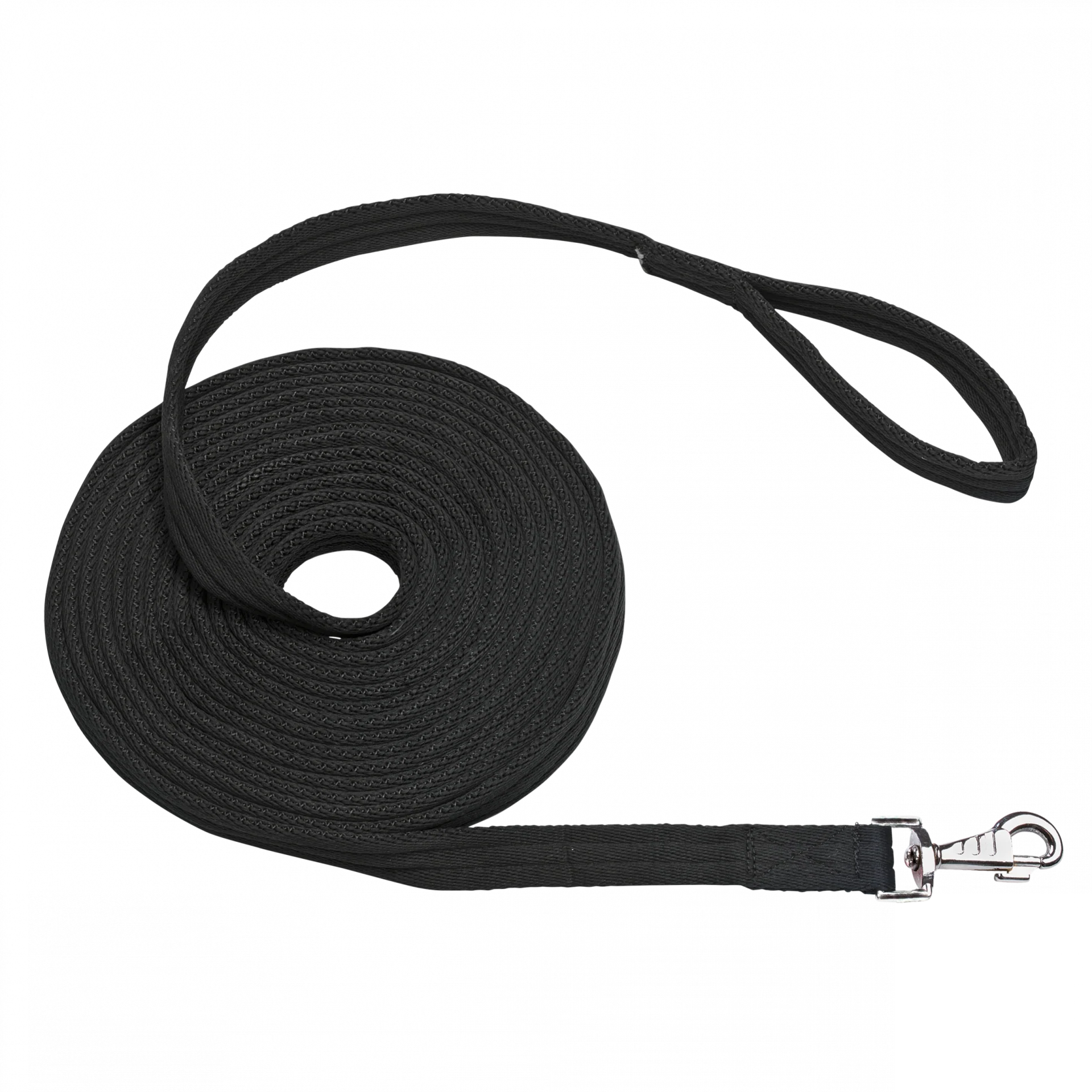 - besonders weiche, handfreundliche Longe aus Polyester-Mischgewebe mit drehbarem Karabinerhaken und Handschlaufe
