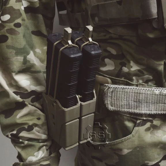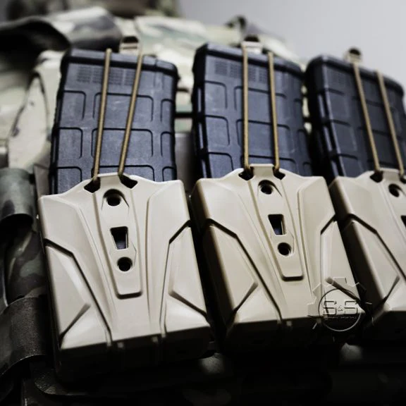 Die ELOS™ – 5.56 ist eine flexible Magazintasche, die maximale Magazinretention bietet. Die ELOS™ wird aus einem spritzgegossenen Elastomer hergestellt, um eine hervorragende Reißfestigkeit, Geräuschreduzierung und die Fähigkeit zu bieten, starken Stoßkräften zu widerstehen, die ein Reißen oder Quetschen der Magazine in einem breiten Temperatur- und Umgebungsbereich verhindert. Die ELOS™ wird mit dem Gear Retention Track™ (GRT) befestigt und kann einzeln, parallel oder versetzt gestapelt eingesetzt werden. In Zukunft werden weitere Kaliber für Pistolen und Gewehre erhältlich sein.