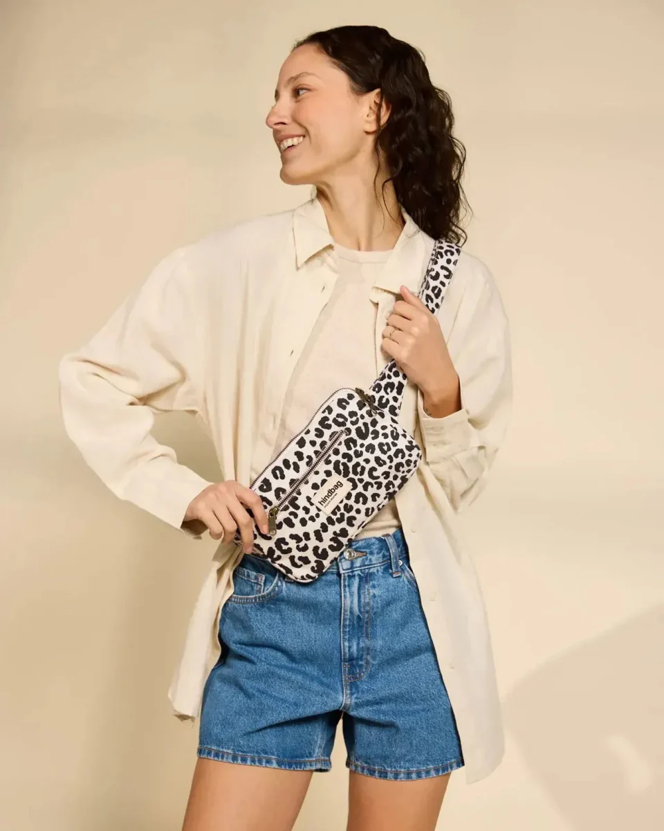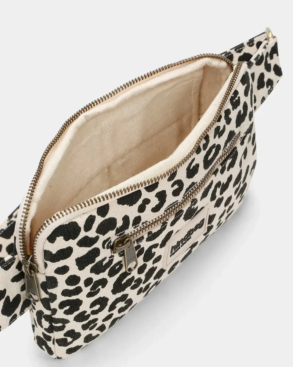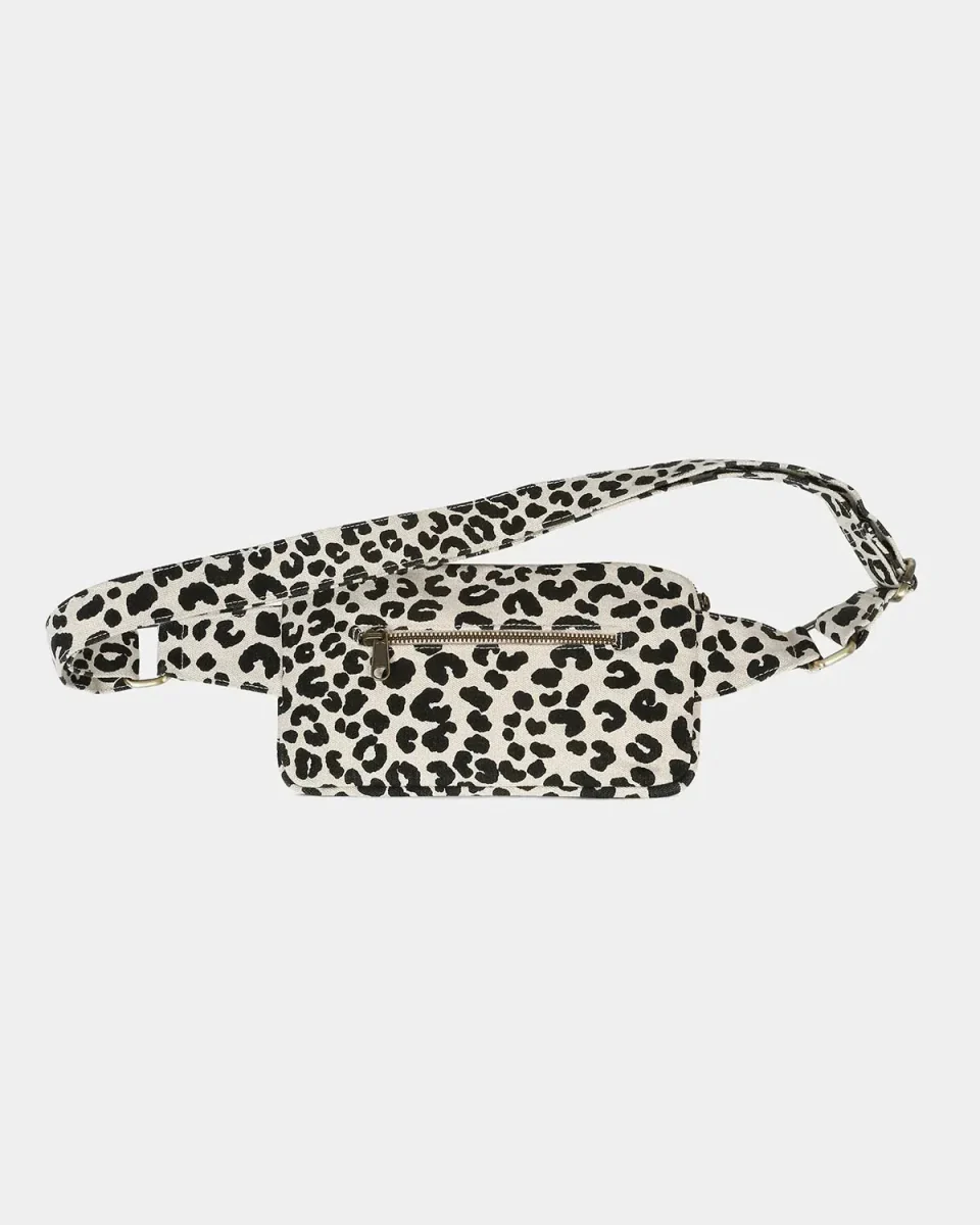 Leichte, robuste Gürteltasche aus naturweißem Bio-Baumwoll-Canvas mit auffälligem Leopardenmuster – stylisch, praktisch und nachhaltig gefertigt.