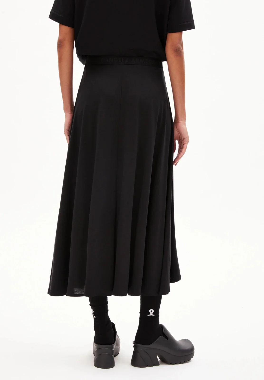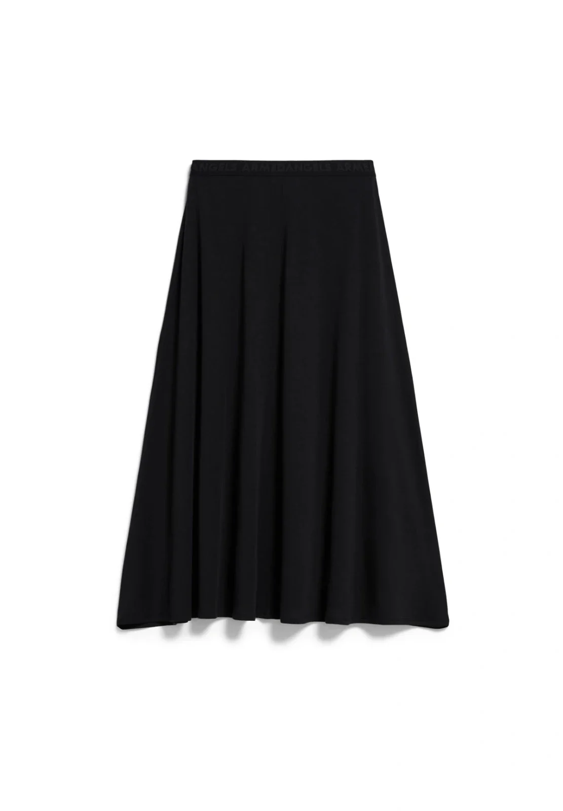 Eleganter Jersey-Midirock in klassischem Schwarz aus TENCEL™ Lyocell – weich fallend, bequem und vielseitig kombinierbar.