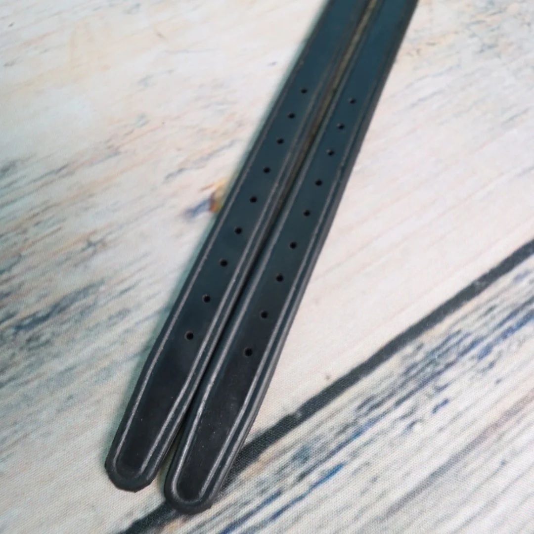 Schützen Sie Ihre Reitstiefel und optimieren Sie den Kontakt zwischen Ihnen und Ihrem Pferd mit unseren raffinierten, abwischbaren Sporenriemen aus Gummi.