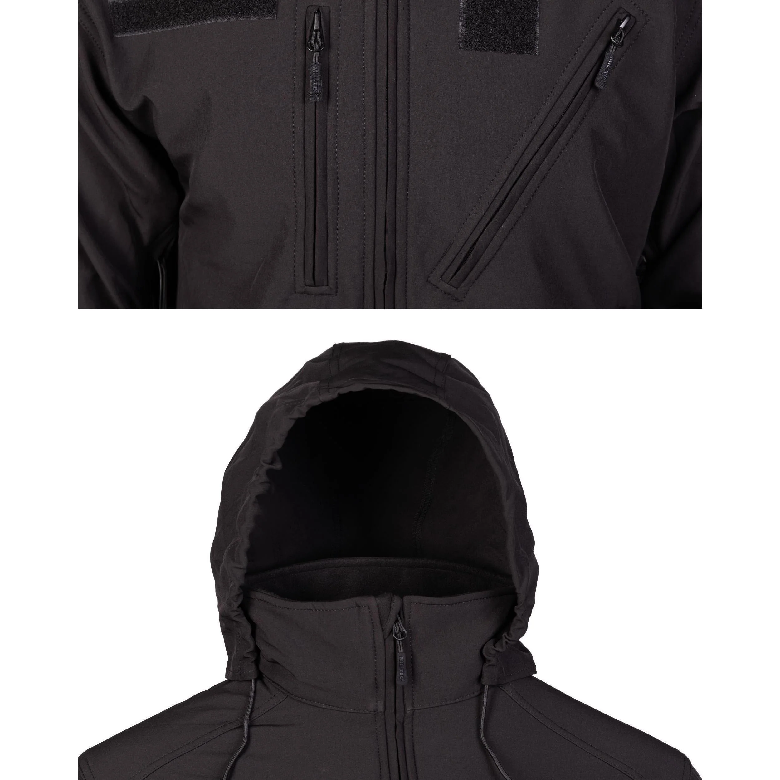 - wind-, wasserabweisende und atmungsaktive 3-Lagen Softshell Jacke