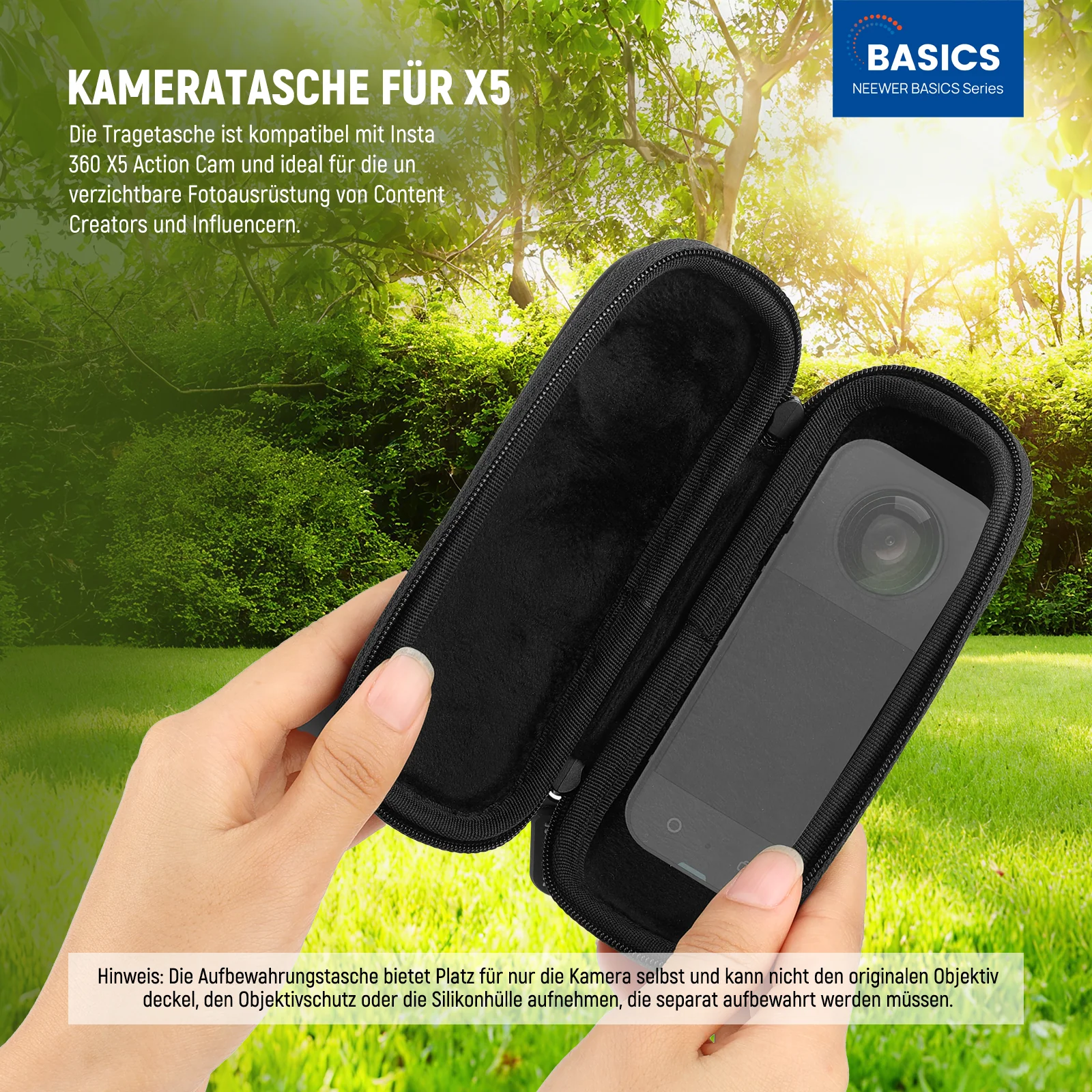 - Kameratasche speziell für X5– Die Fototasche ist kompatibel mit Insta 360 X5 Action Cam. Das Hartschalentasche ist ein unverzichtbares Fotografie Zubehör für Content Creator und eine ideale Wahl für die grundlegende Fotoausrüstung von Influencern. Hinweis: Die Aufbewahrungstasche ist ausschließlich für die Kamera selbst vorgesehen und bietet keinen Platz für den Original Objektivdeckel, den Objektivschutz oder die Silikonhülle, die separat aufbewahrt werden müssen