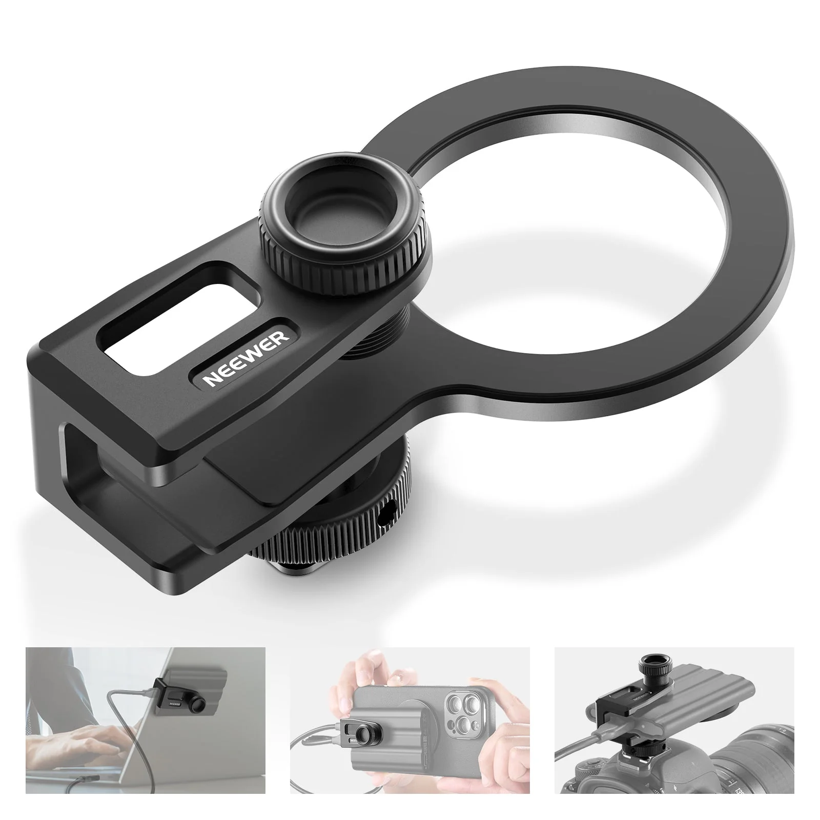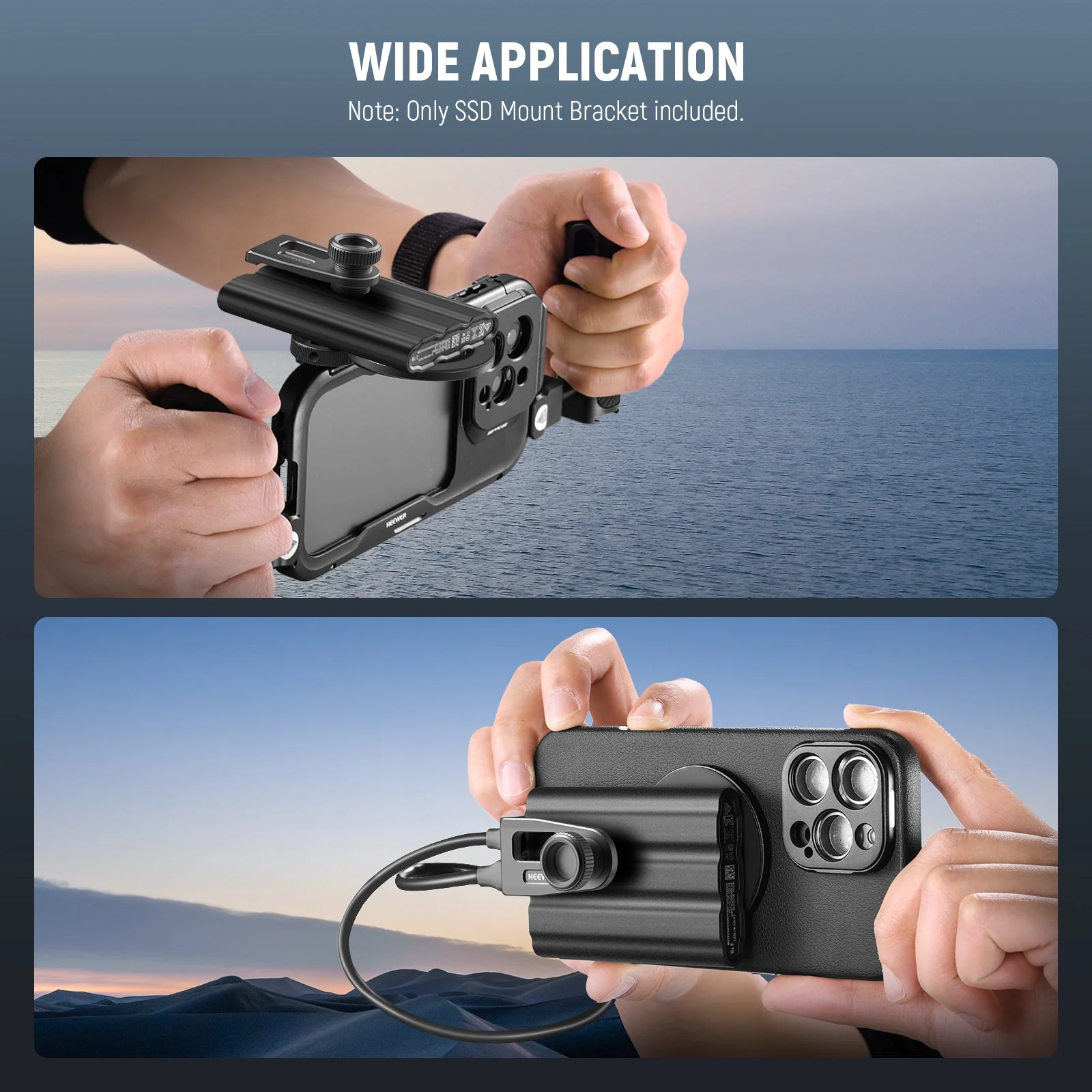 - Flexible Montagepositionen– Der mitgelieferte abnehmbare Cold Shoe Adapter kann über die M4 Schraube im Inneren des Cold Shoe Adapters mit der SSD Klemmbasis oder einer Seite verbunden werden. Ermöglicht die Installation des Halters in flacher oder vertikaler Position auf der Cold Shoe Halterung eines Kamerakäfigs oder eines oberen Griffs