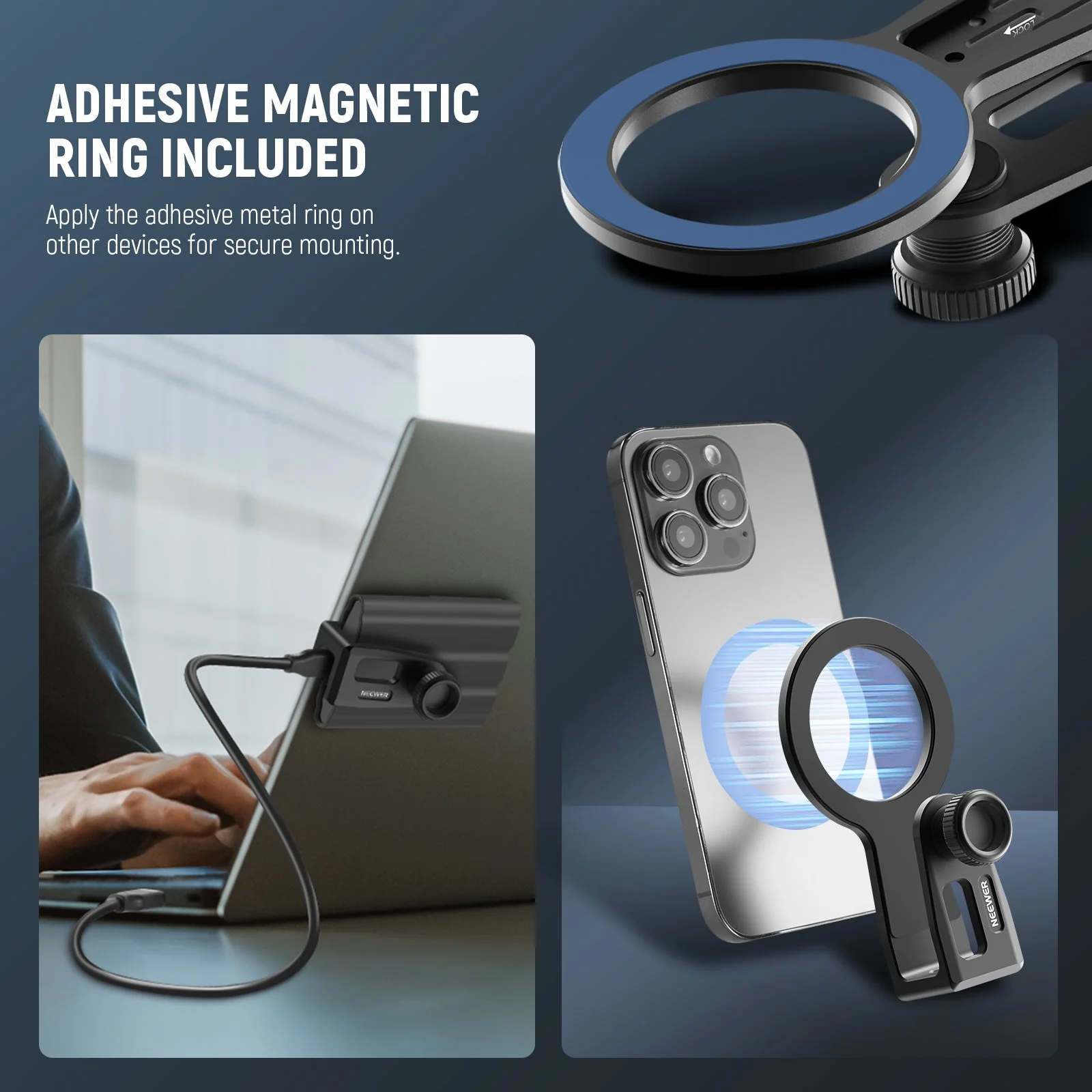 - Leicht verstellbare Kabelklemme– Die Kabelklemme verfügt über zwei Schraubknöpfe. Ein Schraubknopf bewegt die Klemme zur Ausrichtung des USB Anschlusses entlang des Schlitzes und arretiert sie. Ein weiterer Schraubknopf sichert das Kabel für eine konstante Signalübertragung. Zwei Schraubknöpfe sind einfach und einhändig verstellbar