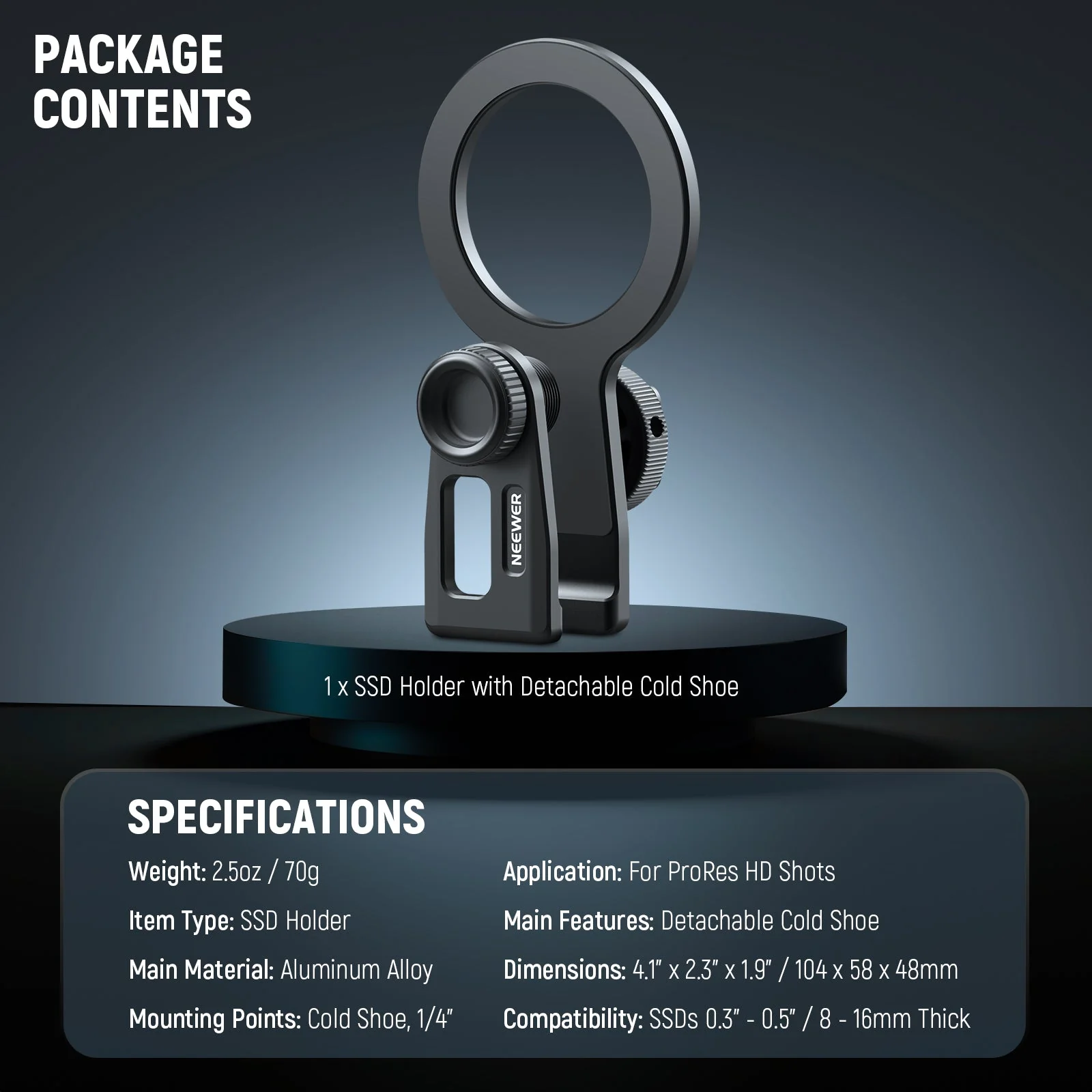 - 1 x SSD-Halterung mit abnehmbarem Cold Shoe