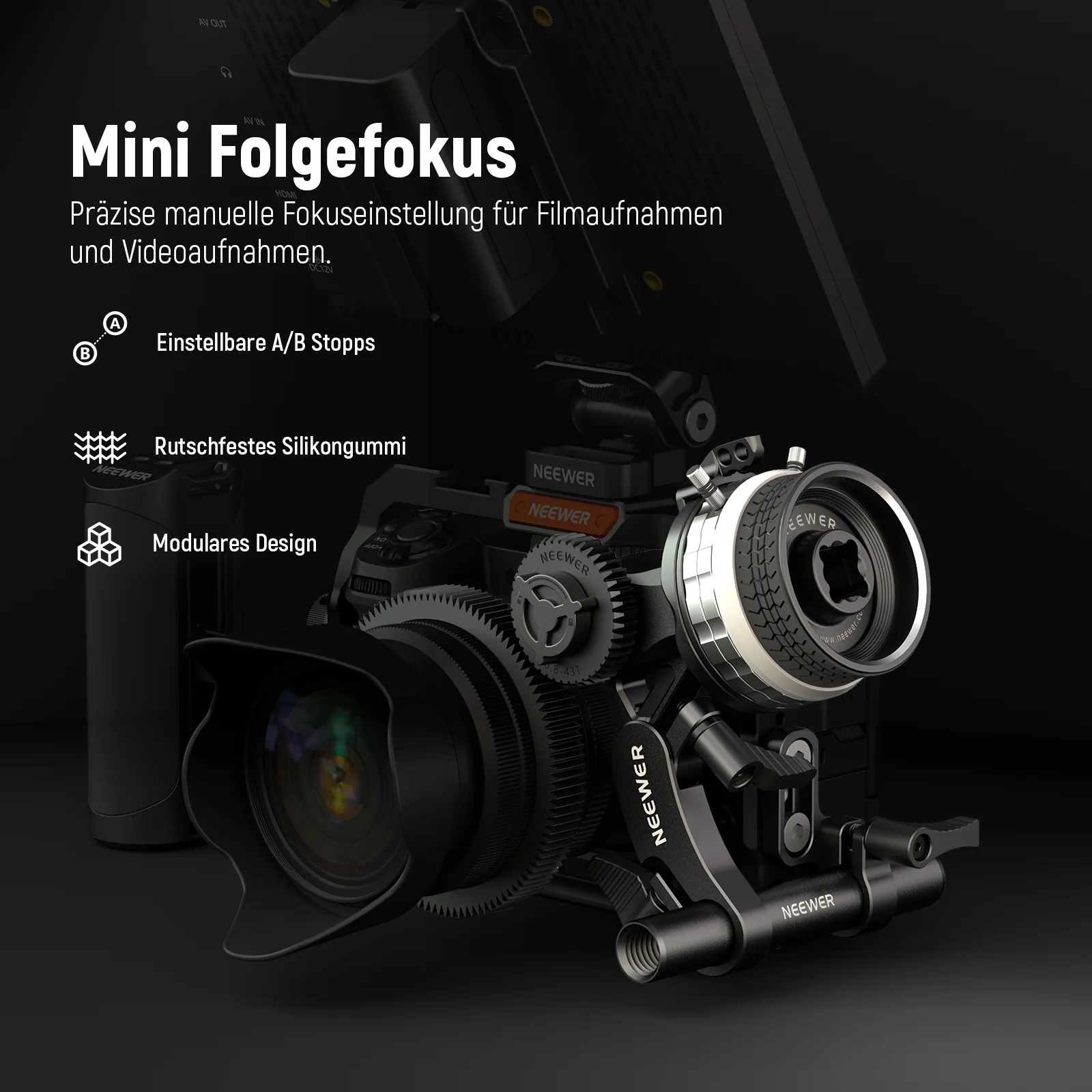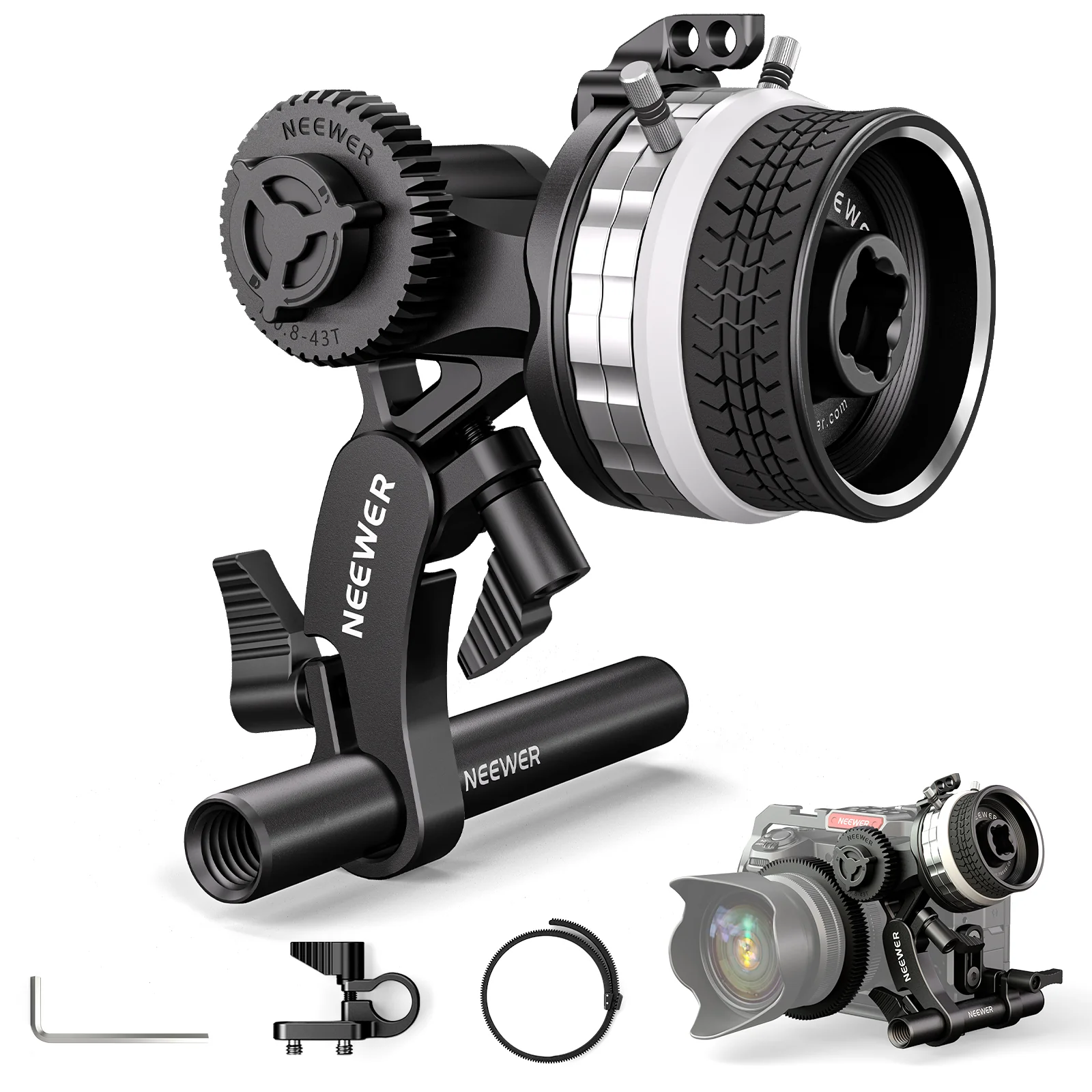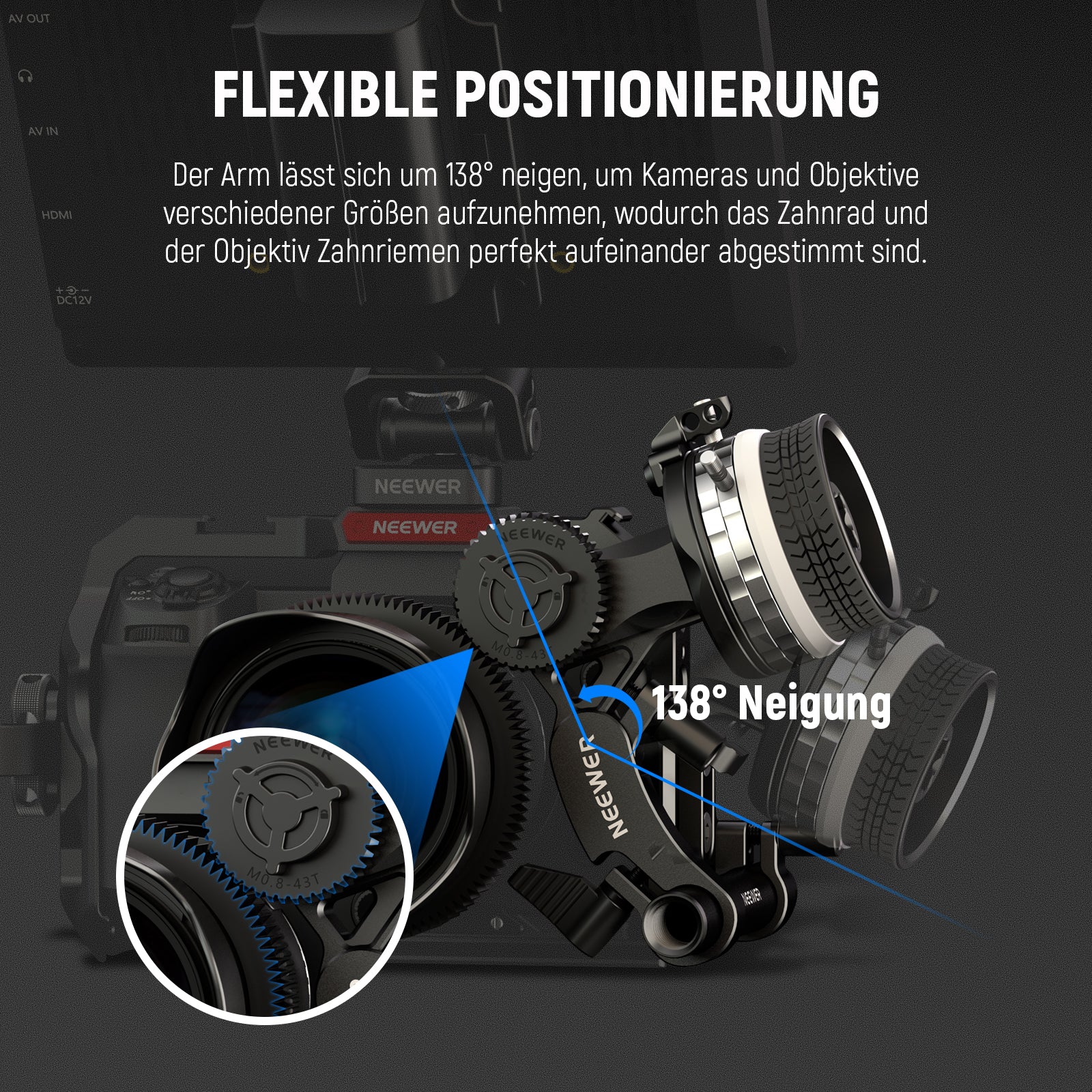 - 【Sanfter manueller Fokus】 NEEWER PG001 Mini Follow Focus ermöglicht einen reibungslosen manuellen Fokus für Videoaufnahmen. Der anpassbare Objektiv Zahnkranz passt zu einer Vielzahl von Kameraobjektiven mit einem Durchmesser von bis zu 114mm. Mit einem Gewicht von nur 320g (11,3Unzen) kann der Follow Focus in Ihrer Tasche bleiben und mit Ihnen um die Welt reisen