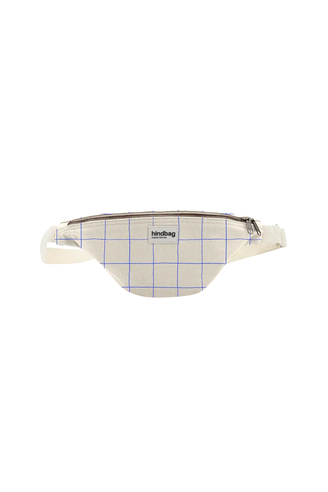 Nachhaltige Fanny Pack aus GOTS-zertifizierter Bio-Baumwolle mit creme-blauem Karomuster – stylisch, praktisch und perfekt für den Alltag.