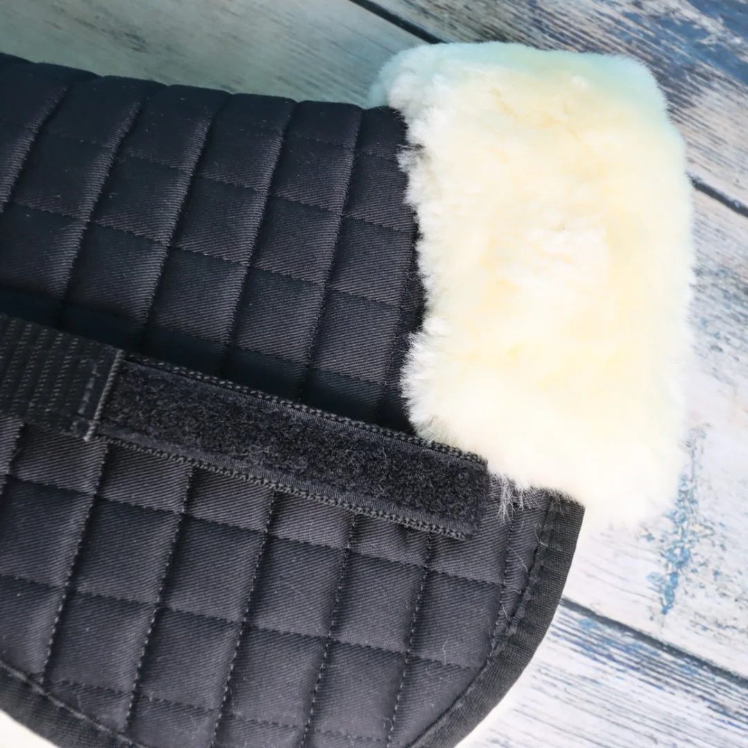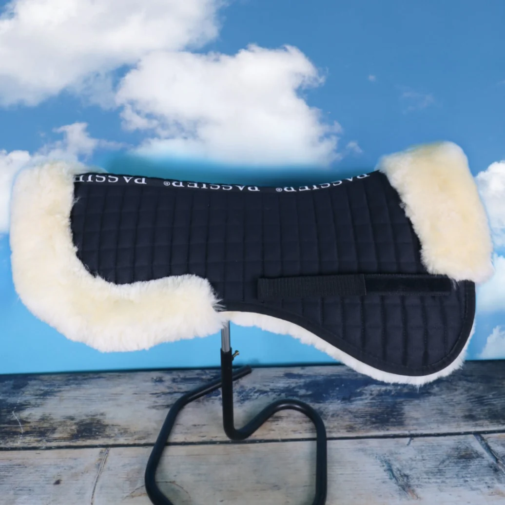 Das anatomisch geformte, strapazierfähige Pad aus pflanzlich gegerbtem Lammfell hat einen hohen therapeutischen Wert: Es wirkt stoßabsorbierend, vermeidet Druckstellen nachhaltig und ist optimal für Pferde mit empfindlichem Rücken geeignet. Es fördert die Durchblutung und die Entspannung – und kann auch bei Allergikern eingesetzt werden. Die Unterseite des Pads besteht aus echtem Lammfell mit einer Wollhöhe von 25 mm. Die Oberseite ist aus Baumwolle. Das Pad wird mit Gurtschlaufen an den Sattelstrippen befestigt, die Länge der Gurtschlaufen lässt sich durch den Klettverschluss variieren.