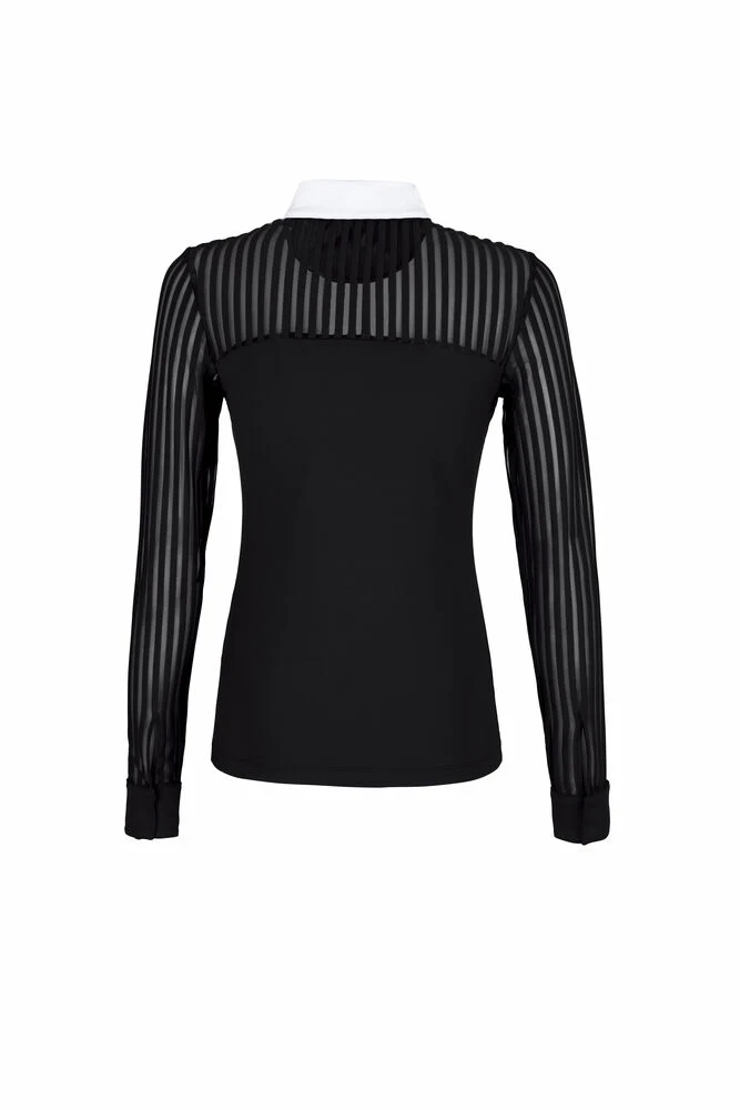 - Ärmel, Vorderteil-und Rückenteilpasse aus gestreifter Meshware