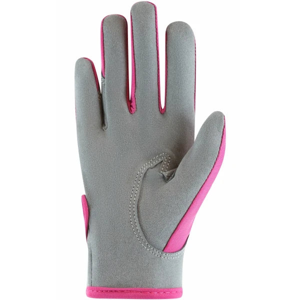 Früh übt sich – mit unserem Koppl. Ob im Raspberry Rose Einhorn-Look, in Black oder Vivid Blue mit Hufeisenmuster, hier finden alle kleinen Reiterinnen und Reiter das passende Design. Das strapazierfähige und angenehm weiche DURADERO Synthetikmaterial an der Innenhand überzeugt durch Stretch, Beweglichkeit und Feinfühligkeit und sorgt zudem für einen zuverlässig rutschfesten Griff am Zügel. Die Oberhand ist mit Elastic Fabric besonders elastisch und sorgt für ein angenehmes Tragegefühl. Ein Klettriegel fixiert den Handschuh zuverlässig am Handgelenk. Durchdacht für noch mehr Reitspaß: Das Roeckl Sports Händchen Logo auf dem Zügeldaumen gilt als visuelle Hilfe, damit die Kleinen ihre aufgestellte Zügelfaust und damit die korrekte Zügelführung jederzeit kontrollieren können. Wer das Roeckl Sports Logo sieht, hält die Hand richtig. Passform, Funktionalität und Optik sind also speziell auf die Vorlieben unserer kleinen Reiterinnen und Reiter abgestimmt – für noch mehr Freude an ihrem großen Hobby. Der KOPPL ist bereits ab Größe 3 erhältlich und bei 30 Grad in der Maschine waschbar.Enthält kein Leder.