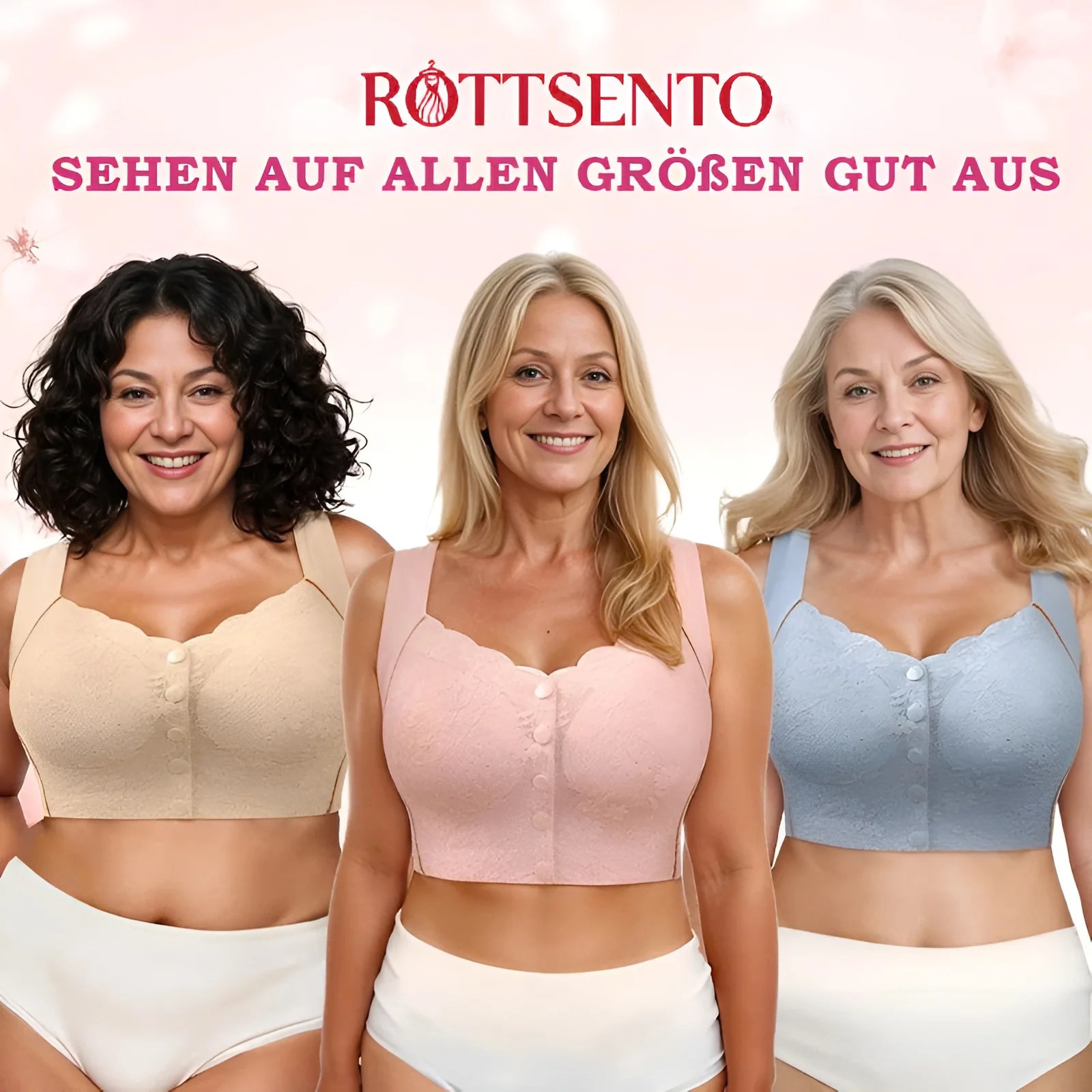 Verabschiede dich von altersbedingtem Hängen und störenden Wölbungen! Mit dem kabellosen Shaping-BH von Rottsento genießt du eine jugendlich wirkende Brust ganz ohne störende Unebenheiten – denn du hast es verdient. 🌸