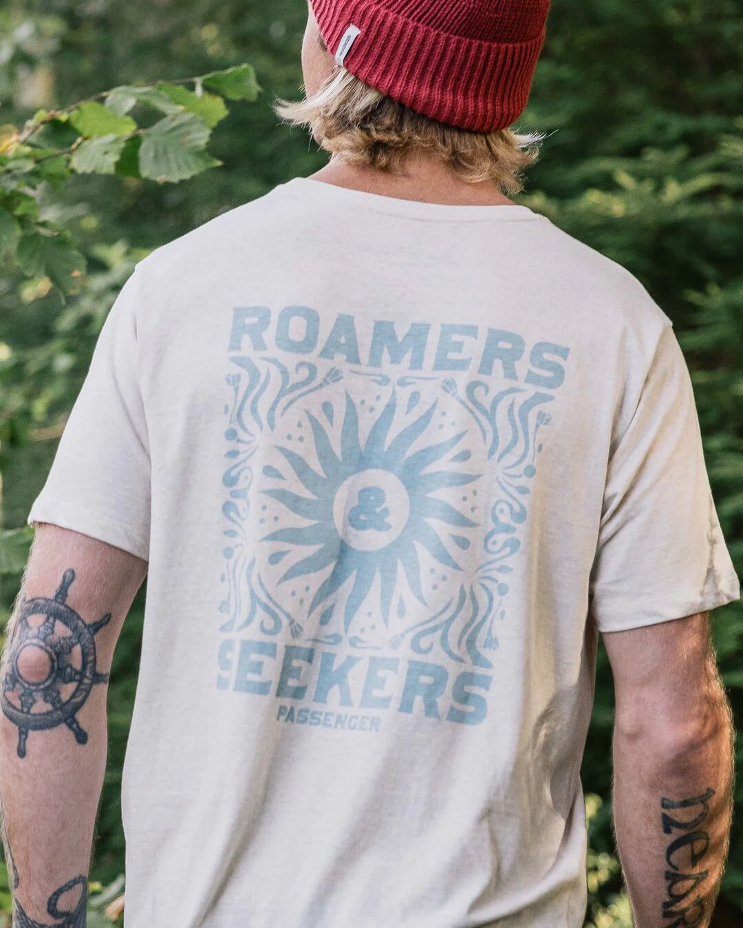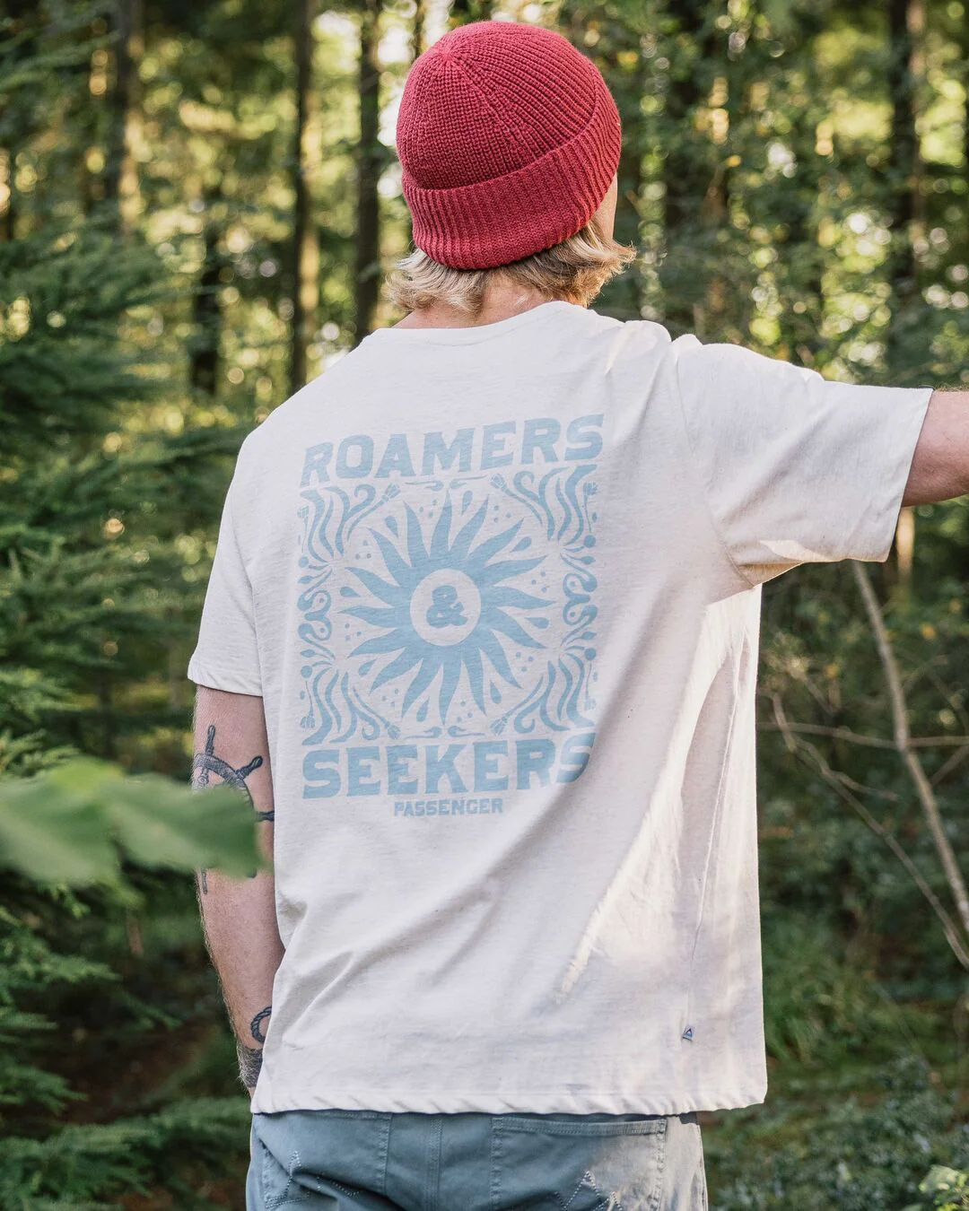 Ein klassisch geschnittenes T-Shirt, hergestellt aus Garn aus nachverbrauchtem Abfall. Für die Roamers und Seekers, die bei Tagesanbruch auf die Straße gehen.
