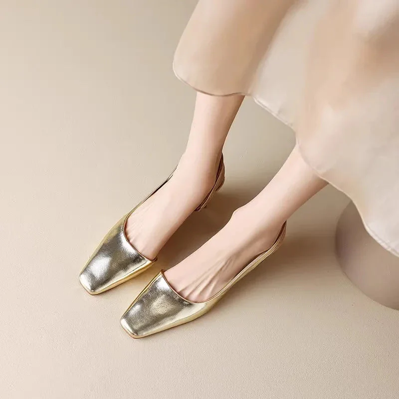 Diese eleganten Slingback-Schuhe in silbernem Metallic setzen ein modisches Statement. Der leicht glänzende Look kombiniert feminine Eleganz mit einer eckigen Schuhspitze und einem stabilen Blockabsatz. Perfekt für elegante Events, das Büro oder einen stilvollen Auftritt in der Stadt – diese Schuhe verleihen jedem Outfit eine raffinierte Note.