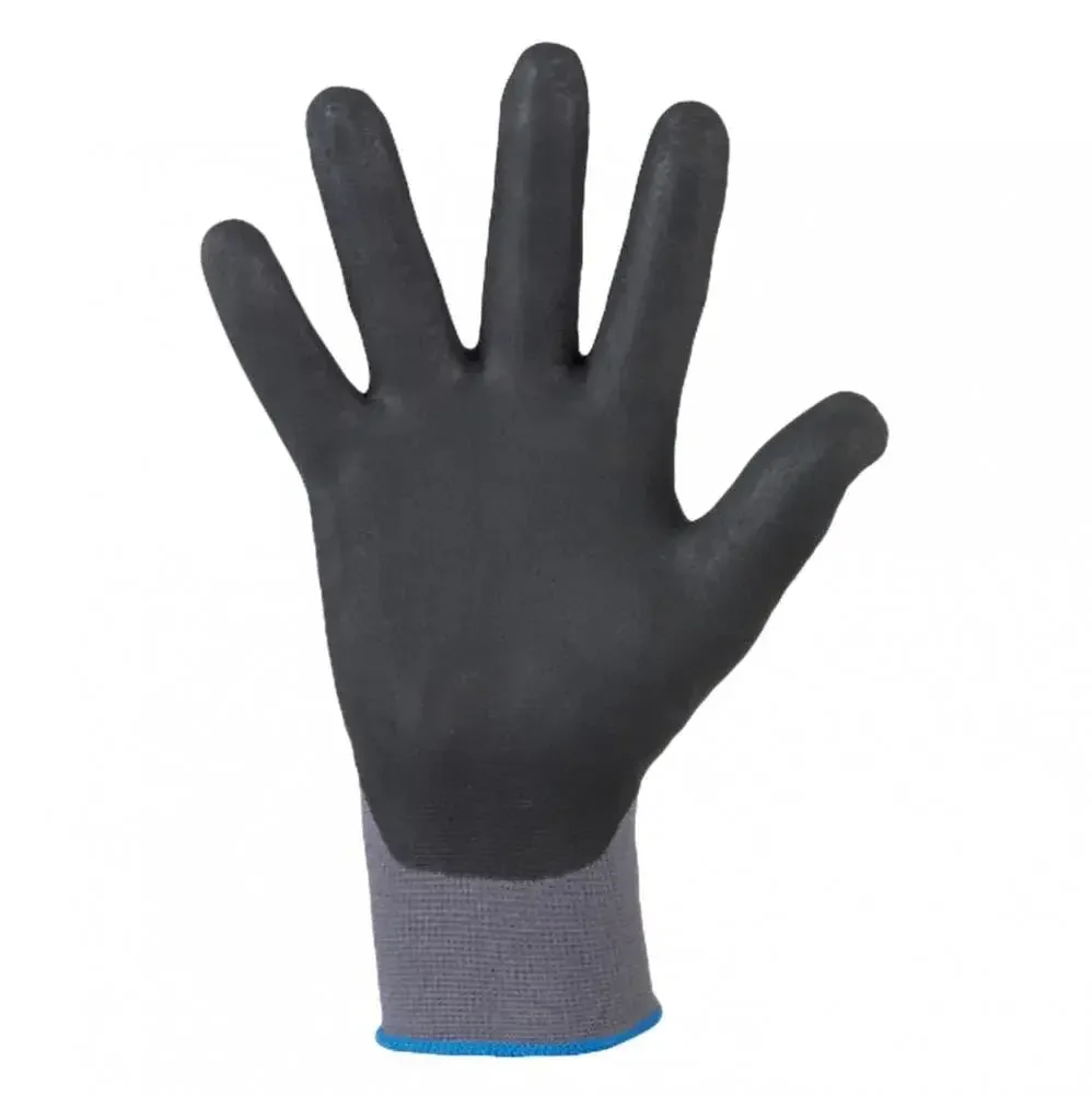 Die Stronghand BUSHAN Nitrilschaum-Handschuhe in Grau/Schwarz mit innovativer 3/4 Micro-Nitrilschaum-Innenhandbeschichtung bieten ausgezeichnete Passform und hohe Griffsicherheit bei gleichzeitig optimaler Atmungsaktivität. Der Stretch-Liner aus 90% Polyamid und 10% Elasthan sorgt für perfekten Sitz, während die teilweise Beschichtung sehr gutes Tastempfinden ermöglicht. Feinststrick nahtlos (15 G) – ideal für präzise Arbeiten mit hohem Tragekomfort.