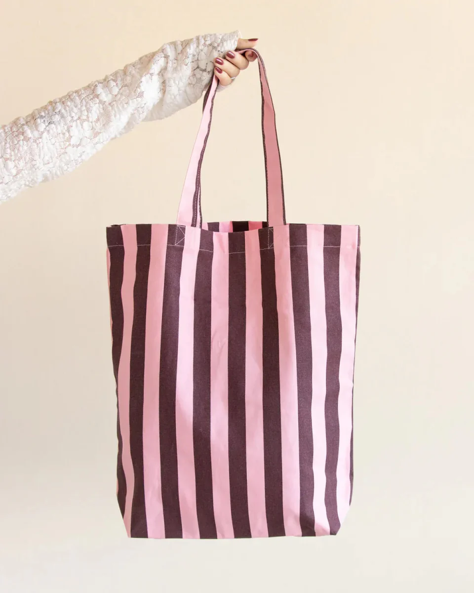 Tragetasche aus Baumwolle • Rosa/Braun gestreift
