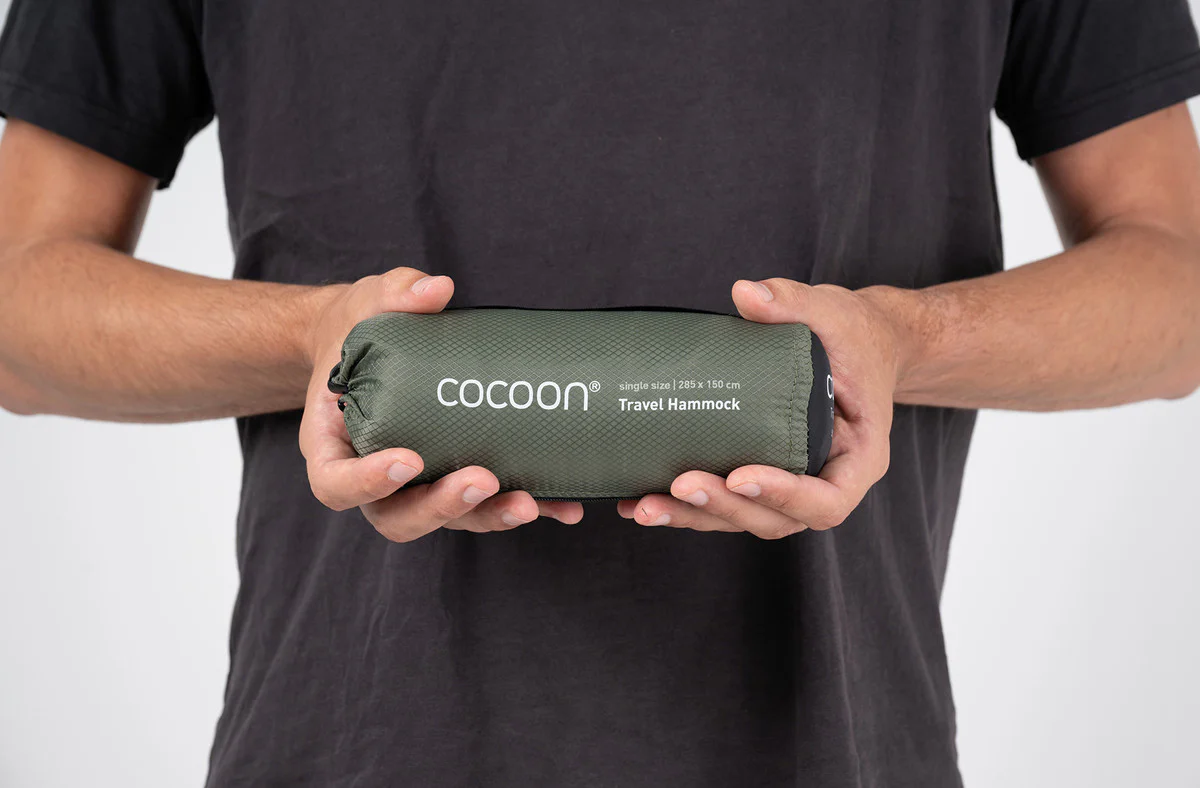 Großzügig geschnittene Hängematte aus weichem und starkem 70 Denier Diamond Ripstop Nylon. Mit super-starken Vierfachnähten. Zwei 12 KN Aluminium-Karabiner im Packsack inkludiert.