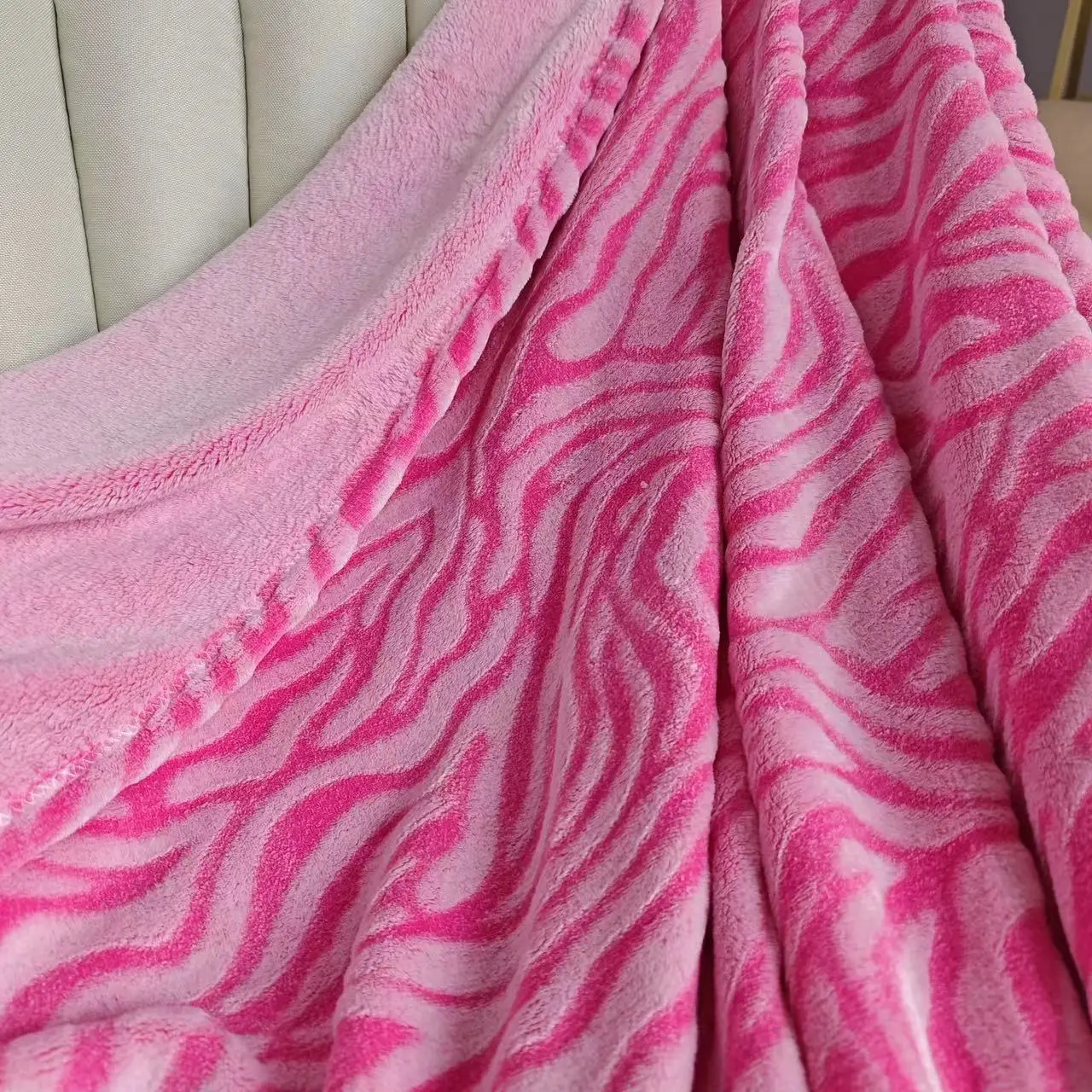 Verleihen Sie Ihrem Wohnraum mit dieser 3D zebra-geprägten Flanell-Fleece-Zwillingsdecke einen wilden Akzent. Leicht und warm – perfekt für Couch, Sofa oder Bett.