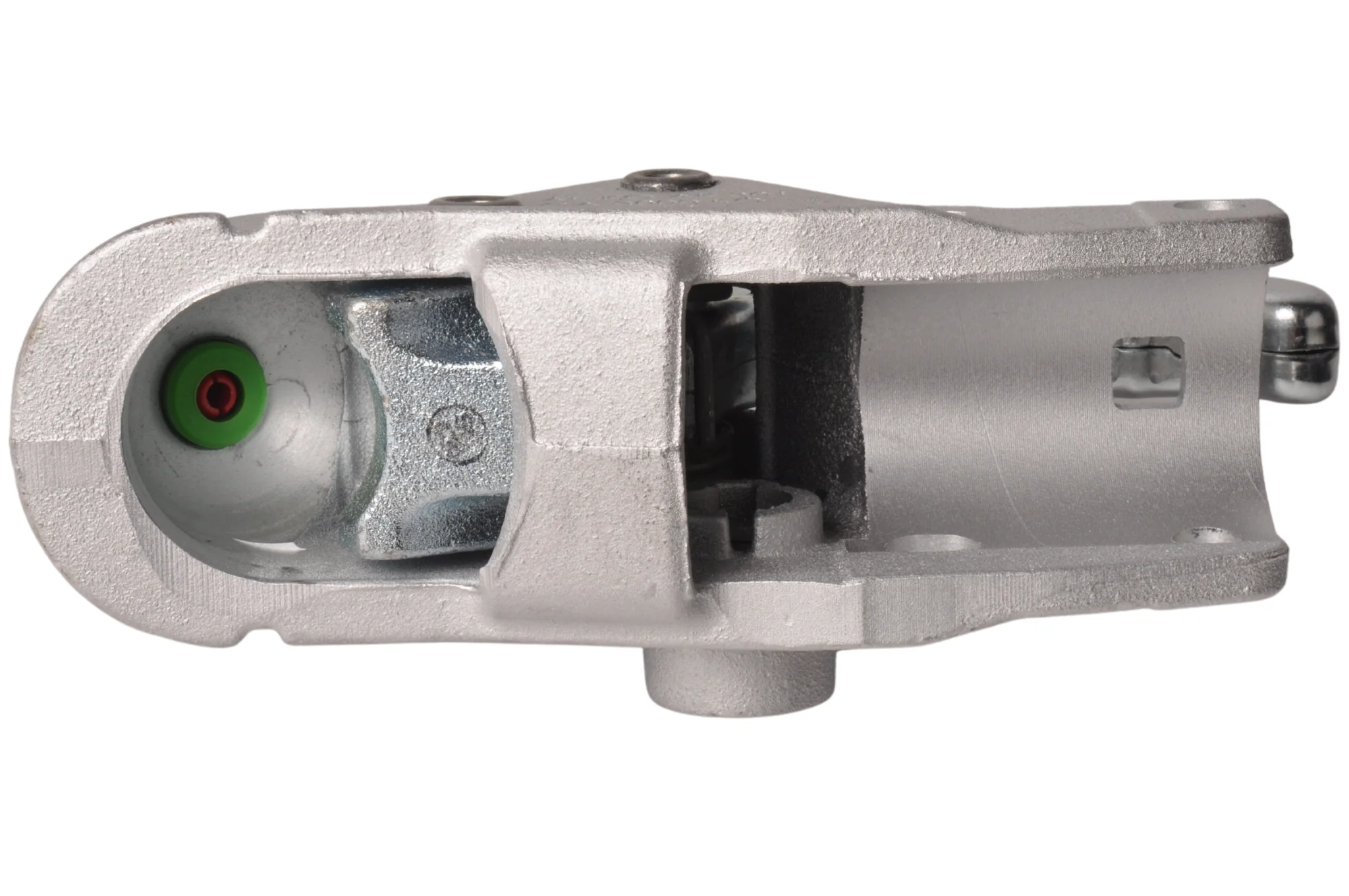 Wenn im angekuppelten Zustand der grüne Zylinder des auf der Deichsel montierten Verschleißindikators sichtbar ist, ist die Kupplung korrekt mit der Kugel des ziehenden Fahrzeugs verbunden.