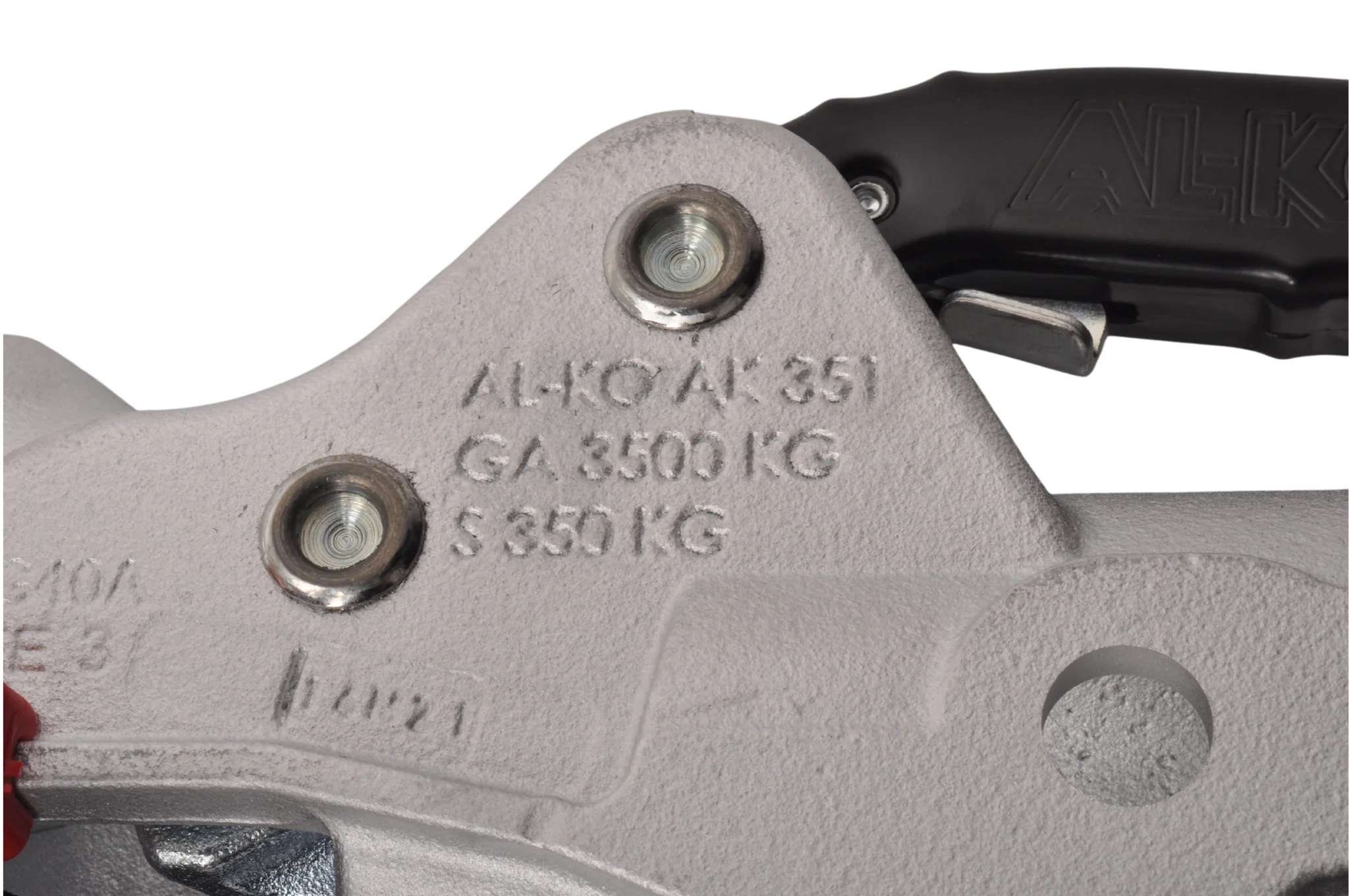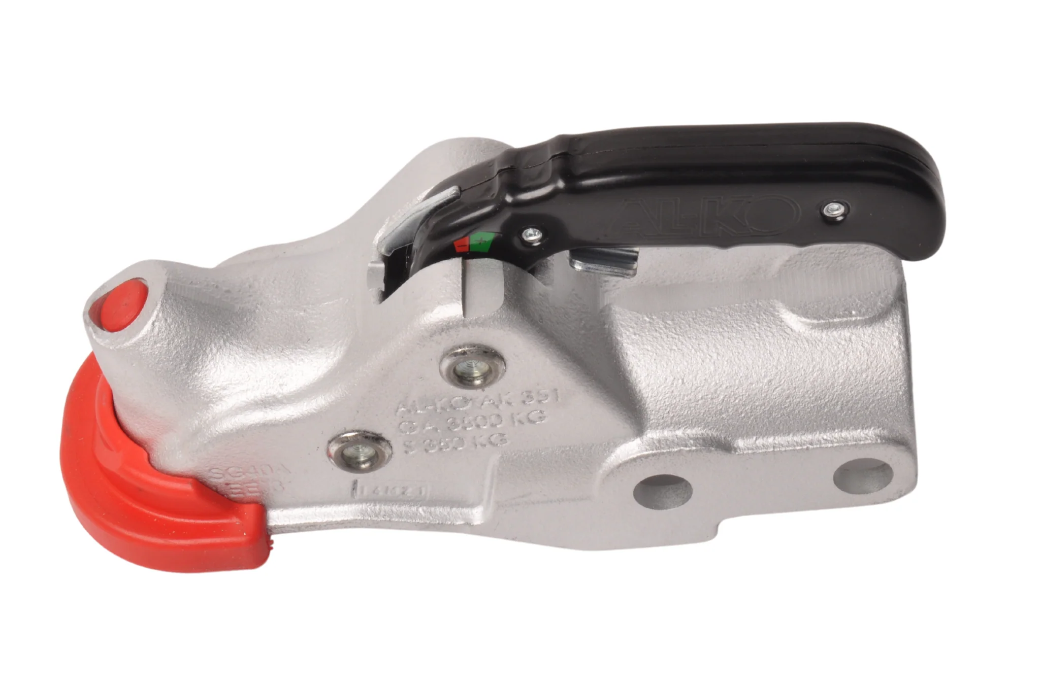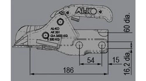 AL-KO AK351 gebremste Kugelkupplung mit einer maximalen Anhängelast von 3500 kg. Diese Kugelkupplung passt an eine runde 60-mm Abschleppstange.