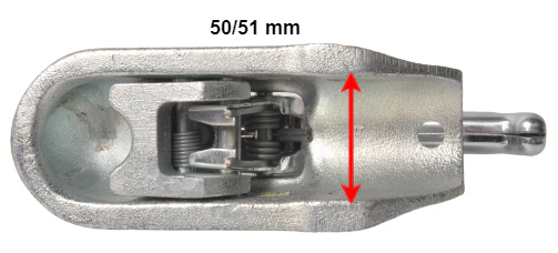 Gebremste Kugelkupplung Albe EM220RB mit einer maximalen Anhängelast von 2200 kg. Diese Kugelkupplung passt auf eine runde 50/51 mm Kugelkupplung.