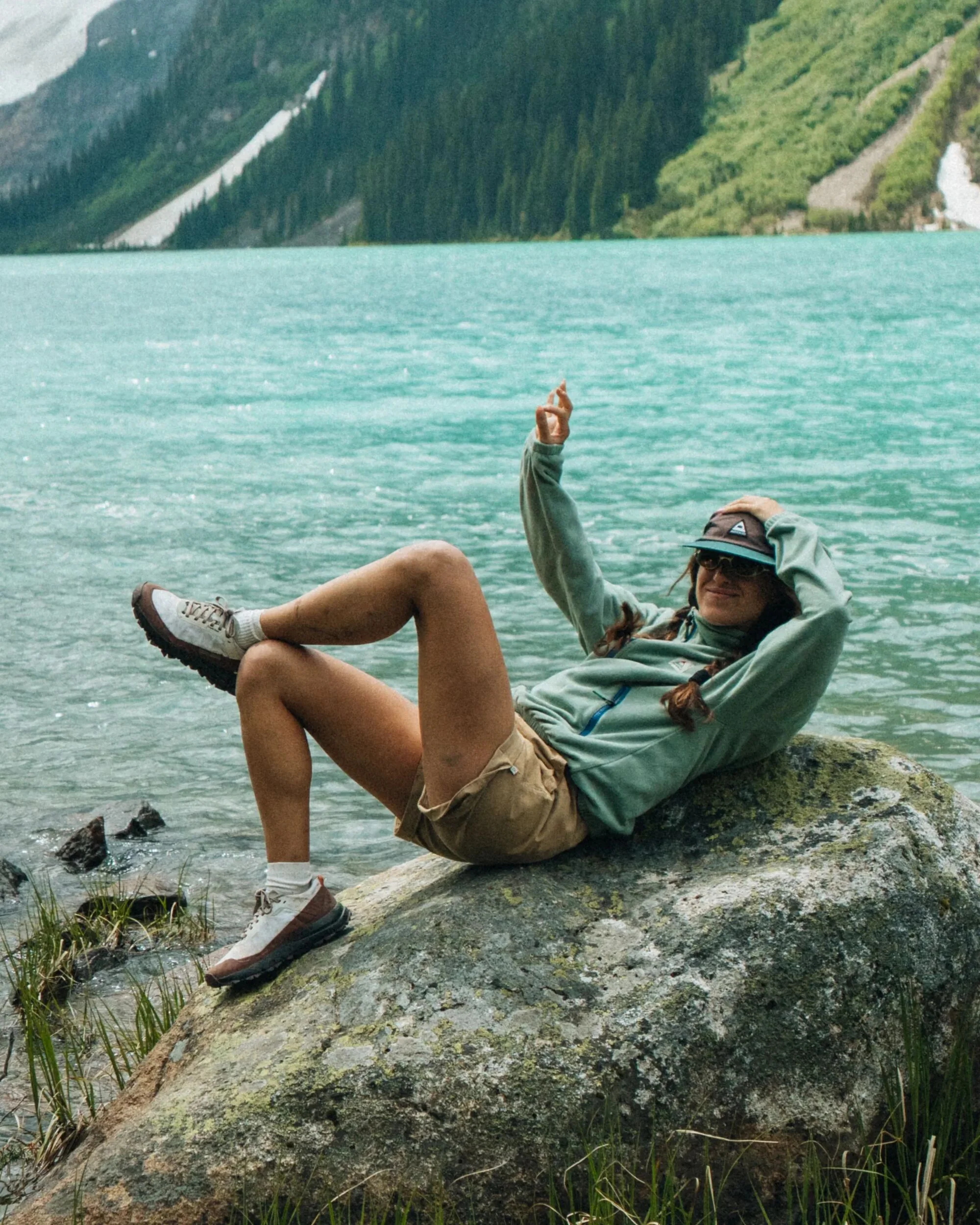 Der leichte Polartec® Mikro-Fleece-Stoff funktioniert als mittlere oder obere Schicht, um jedem Wetter und ganzjährigem Tragen gerecht zu werden. Er ist atmungsaktiv, super weich und kann leicht verstaut werden, wenn es wärmer wird. Diese liegen im mittleren Bereich unseres Polartec® Angebots und sind großartige Begleiter für Roadtrips in allen Jahreszeiten und für alle Abenteuer.
