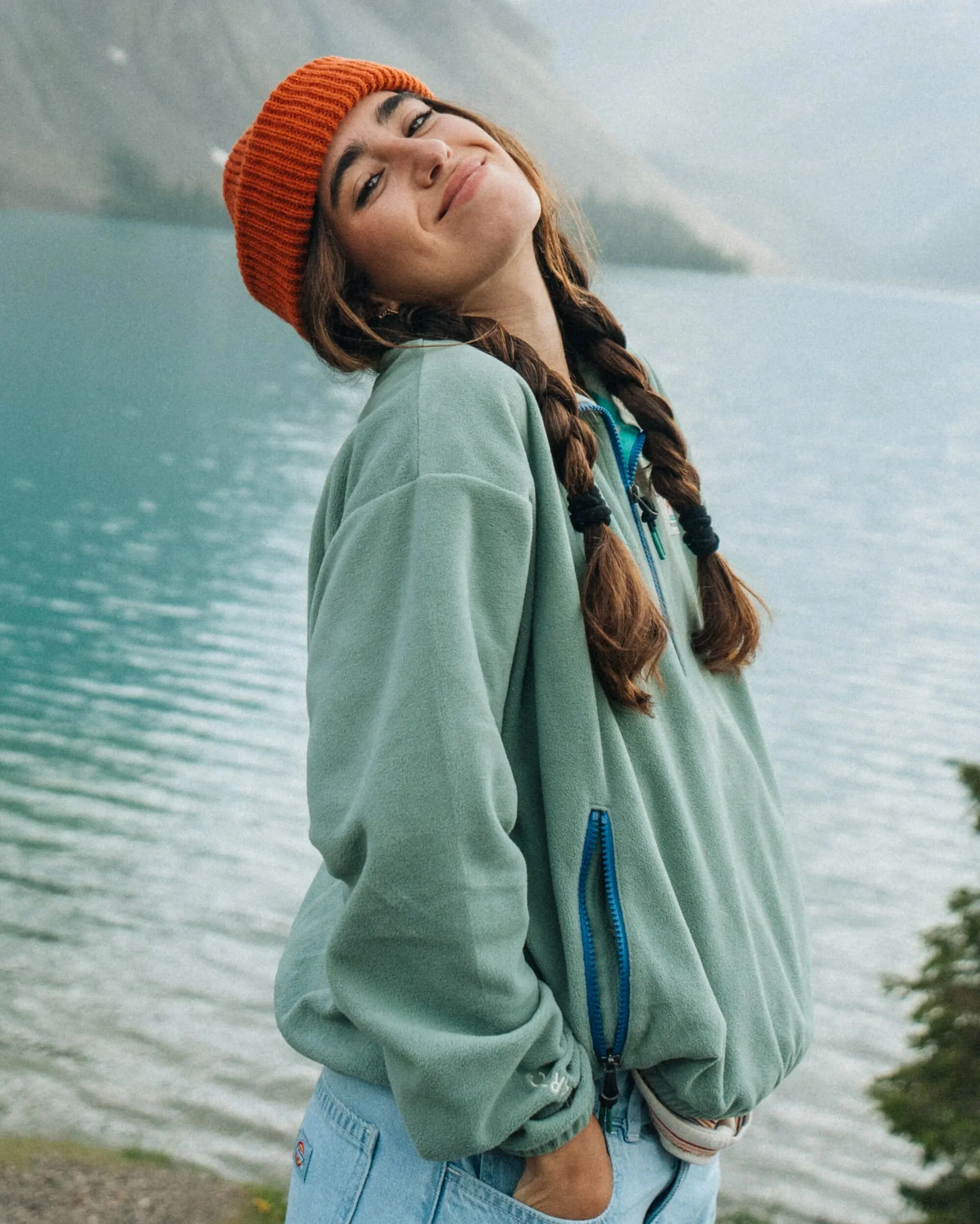 Die Ayla ist ein super weiches Polar Fleece mit einem klassischen, bequemen Schnitt, inspiriert von nebligen Tagen in den Bergen. Hergestellt aus recyceltem Polyester, ist es das perfekte Ganzjahres-Schichtstück.