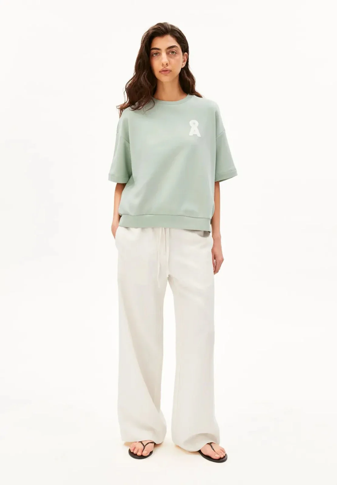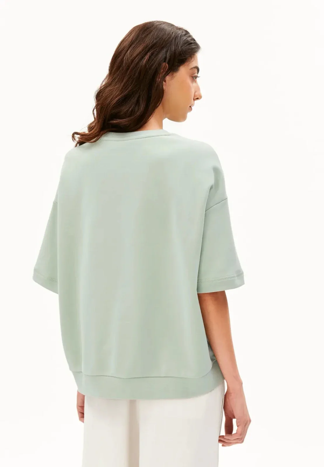 Oversized Sweatshirt aus Bio-Baumwolle in hellem Mintgrün – weicher Damen Sweater, lässig geschnitten, bequem und ideal für entspannte Alltagslooks.
