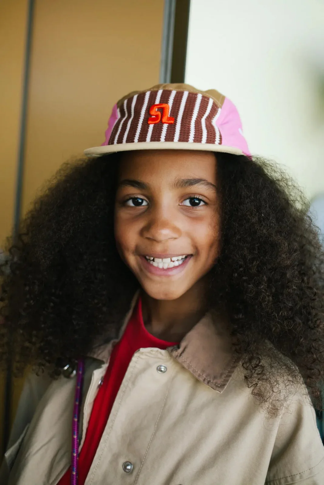 Bunte Schild-Kappe für Kids in Braun & Rosa – klassisch, stylisch und ideal für sonnige Tage oder als modisches Accessoire.