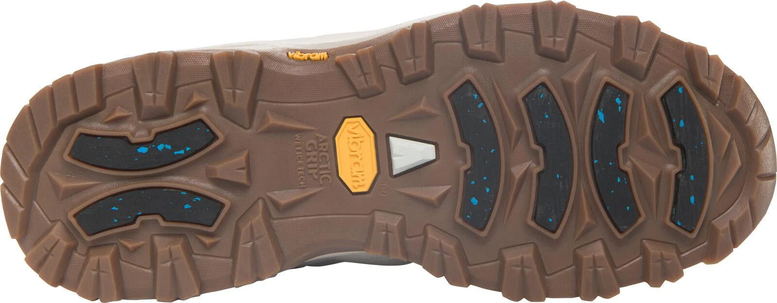 Erleben Sie mit diesem ultimativen Winterwanderschuh, der, vollgepackt mit unzähligen hochwertigen Features und nachhaltigen Innovationen, unübertroffenen Grip und Fußkomfort verleiht. Die Kombination des hohen Schnitts mit einer wasserdichten Membran von Marktführer GORE-TEX sowie einer erstklassigen Primaloft-Isolierung hält die Füße bei praktisch jedem Wetter und allen erdenklichen Bodenverhältnissen trocken und warm. Die Innovationen hören hier aber noch lange nicht auf: Eine EVA-Zwischensohle und eine Vibram Arctic Grip-Außensohle, die speziell für besten Grip auf verschneiten und vereisten Oberflächen entwickelt wurde, runden das Funktionspaket dieses Modells ab. Der Constrictor IceGrip Warm GTX M kann außerdem mit einem hohen Anteil an recycelten Materialien punkten. So benötigt er weniger neue Rohstoffe und sichert sich einen Platz unter den „Less Impact Products“ von Viking.