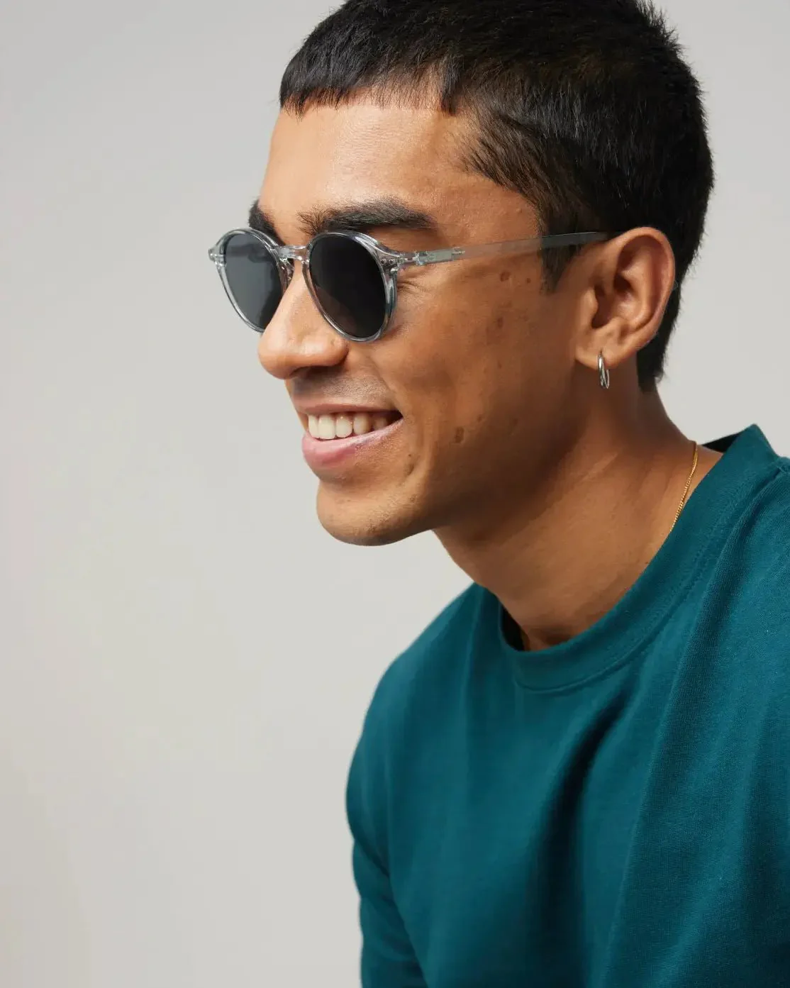 Sonnenbrille in Hellblau mit 100 % UV-Schutz der Kategorie 3. Das leichte, glänzende Gestell aus biologischem Polyamid schützt deine Augen zuverlässig.