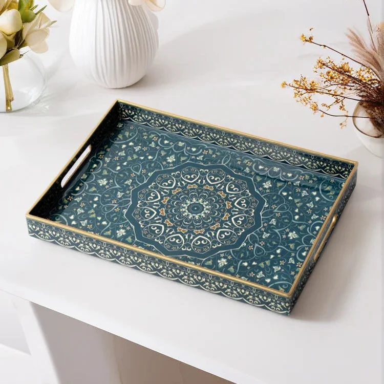 Dieses dekorative Tablett besticht durch ein grünes Muster im Boho-Stil, das Frische, Natürlichkeit und künstlerischen Charme in Ihr Zuhause bringt. Die Farbe sorgt für eine warme und entspannte Atmosphäre.