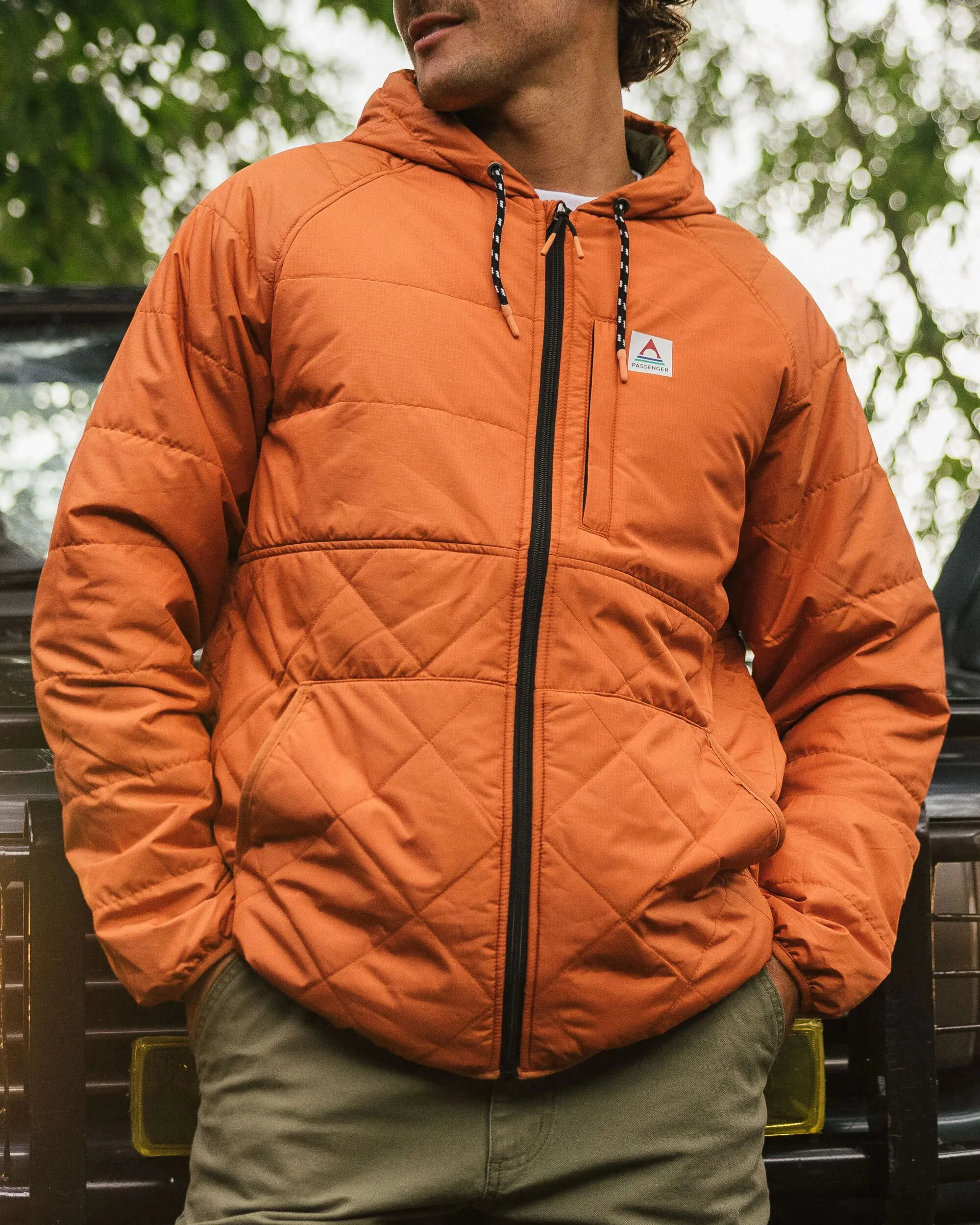 Designed to Wander, die Dylan Jacket ist aus recyceltem Ripstop-Polyester und Imitationsdaunen gefertigt, die dich warm halten, ohne schwer zu sein.