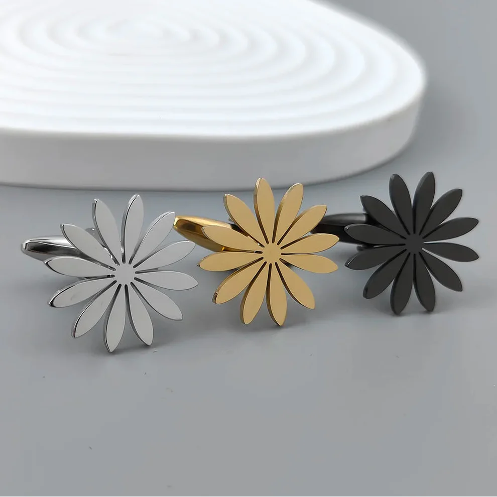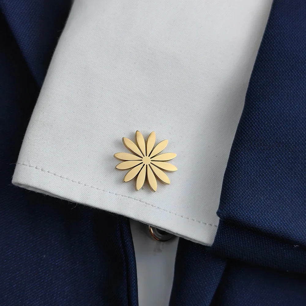 Diese Edelstahl Manschettenknöpfe im Gänseblümchen-Design vereinen feine Handwerkskunst mit symbolischer Schönheit. Das Gänseblümchen steht für Freundschaft, Reinheit und positive Energie – ein stilvolles Zeichen von Zuneigung und Geschmack.