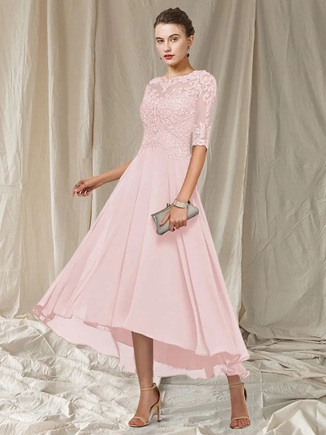 Entdecken Sie dieses elegante knielange Abendkleid aus Spitze. Es strahlt pure Eleganz aus und ist perfekt für festliche Anlässe, wie Hochzeiten oder Galas.
