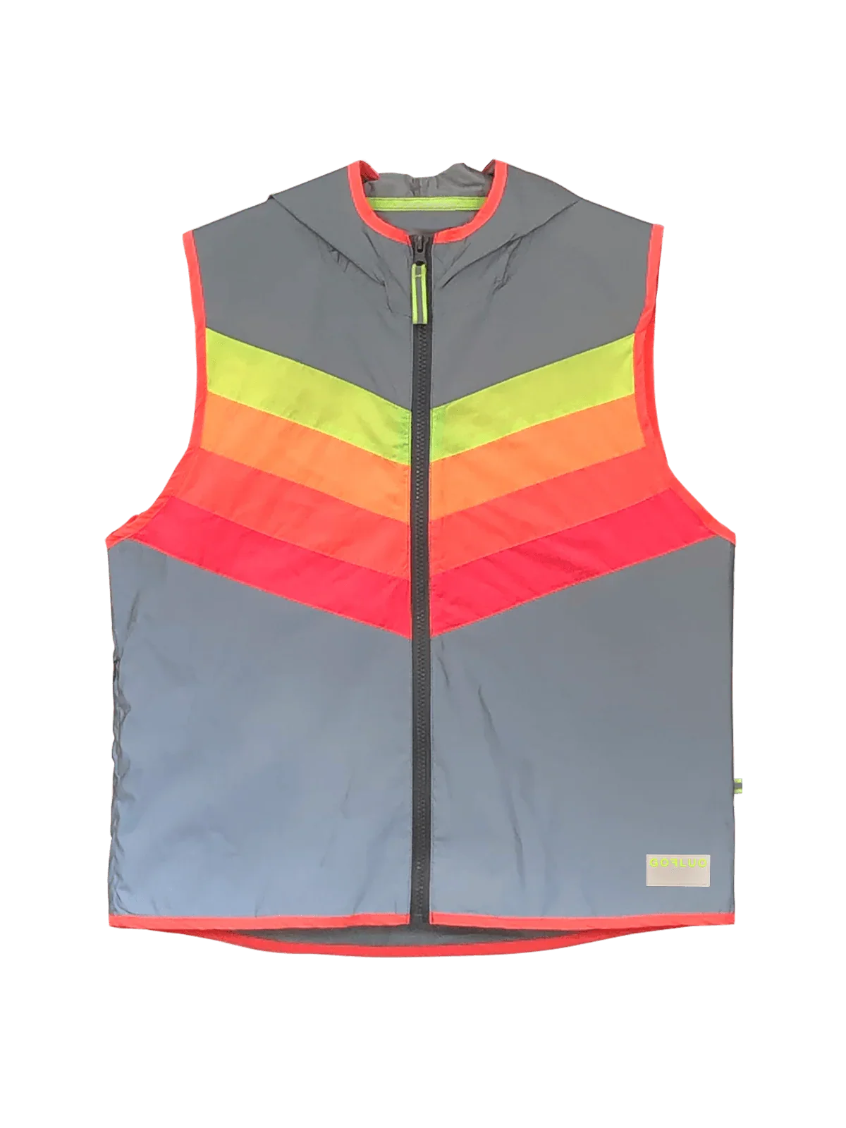 Die Gofluo Warnweste „Darkflow – Grey reflective“ kombiniert Sicherheit mit einem sportlichen Look. Hergestellt aus reflektierendem, grauem Material, bietet sie Sichtbarkeit bei schlechten Lichtverhältnissen. Mit reflektierenden Streifen an Vorder- und Rückseite, Reißverschluss, Kapuze und verlängertem Rückenteil, ist diese wasserabweisende Weste ideal für den Outdoor-Einsatz. Eine praktische Seitentasche rundet das Design ab. Waschbar bei 30 Grad.