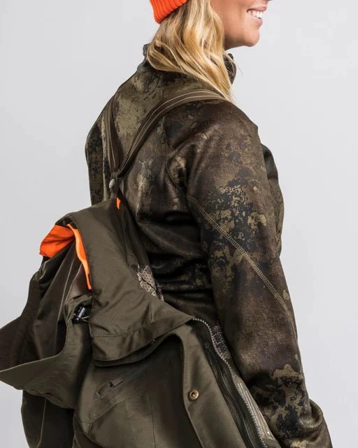 Wird es mal zu warm, kann die Hunter Pro Xtrem 2.0 dank der integrierten Hosenträgergurte auch wie ein Rucksack locker auf dem Rücken getragen werden. Der 2-Wege-Frontreißverschluss kann in beide Richtungen geöffnet werden und scheuert dank Kinnschutz nicht an Hals oder Kinn.