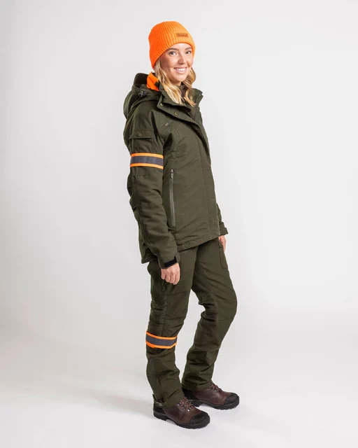 Die Stretcheinsätze bieten einen sehr guten Tragekomfort und der Sitz lässt sich durch den verstellbaren Saum und die durch Klett verstellbaren Armabschlüsse perfekt anpassen. Der Kragen ist für zusätzliche Sichtbarkeit in Signalorange gehalten und schützt Hals und Gesicht zusätzlich vor Wind und Kälte. Die verstellbare Kapuze hält Ihren Kopf warm und trocken und kenn bei Bedarf abgenommen werden.