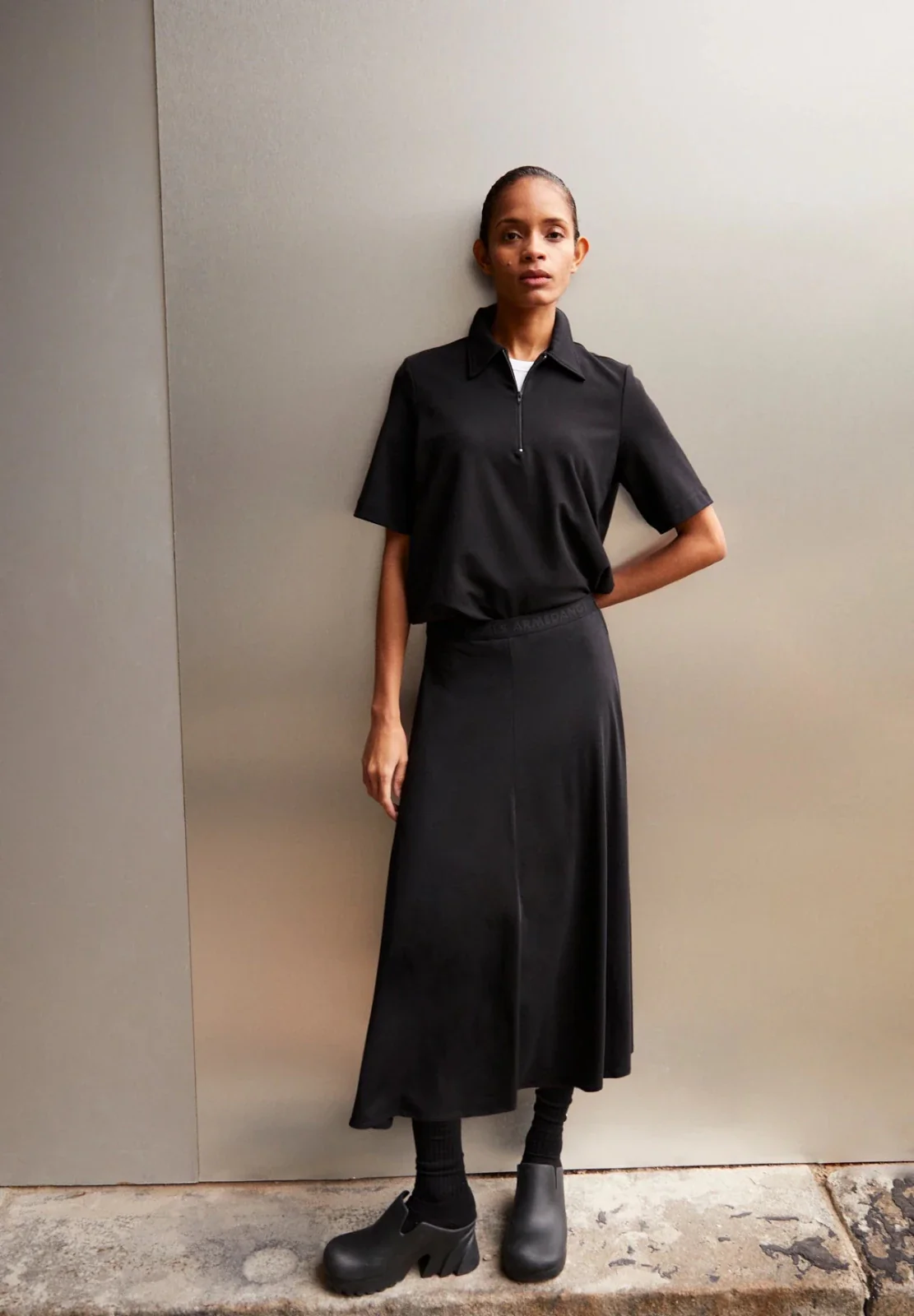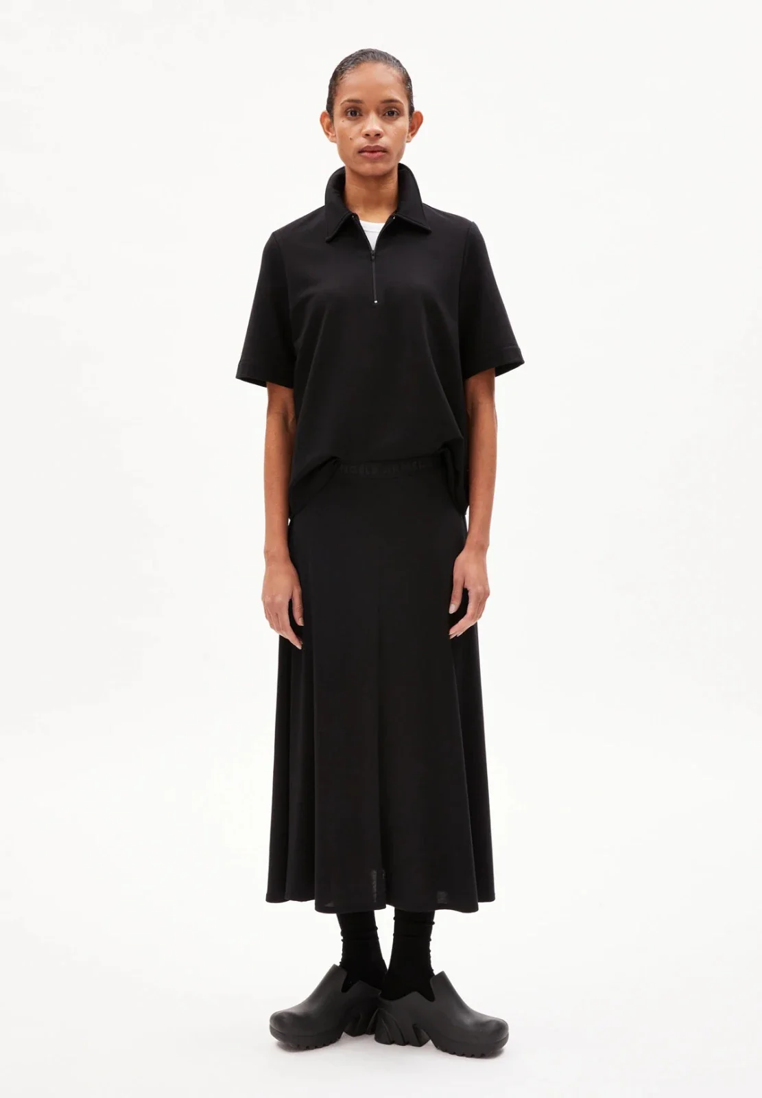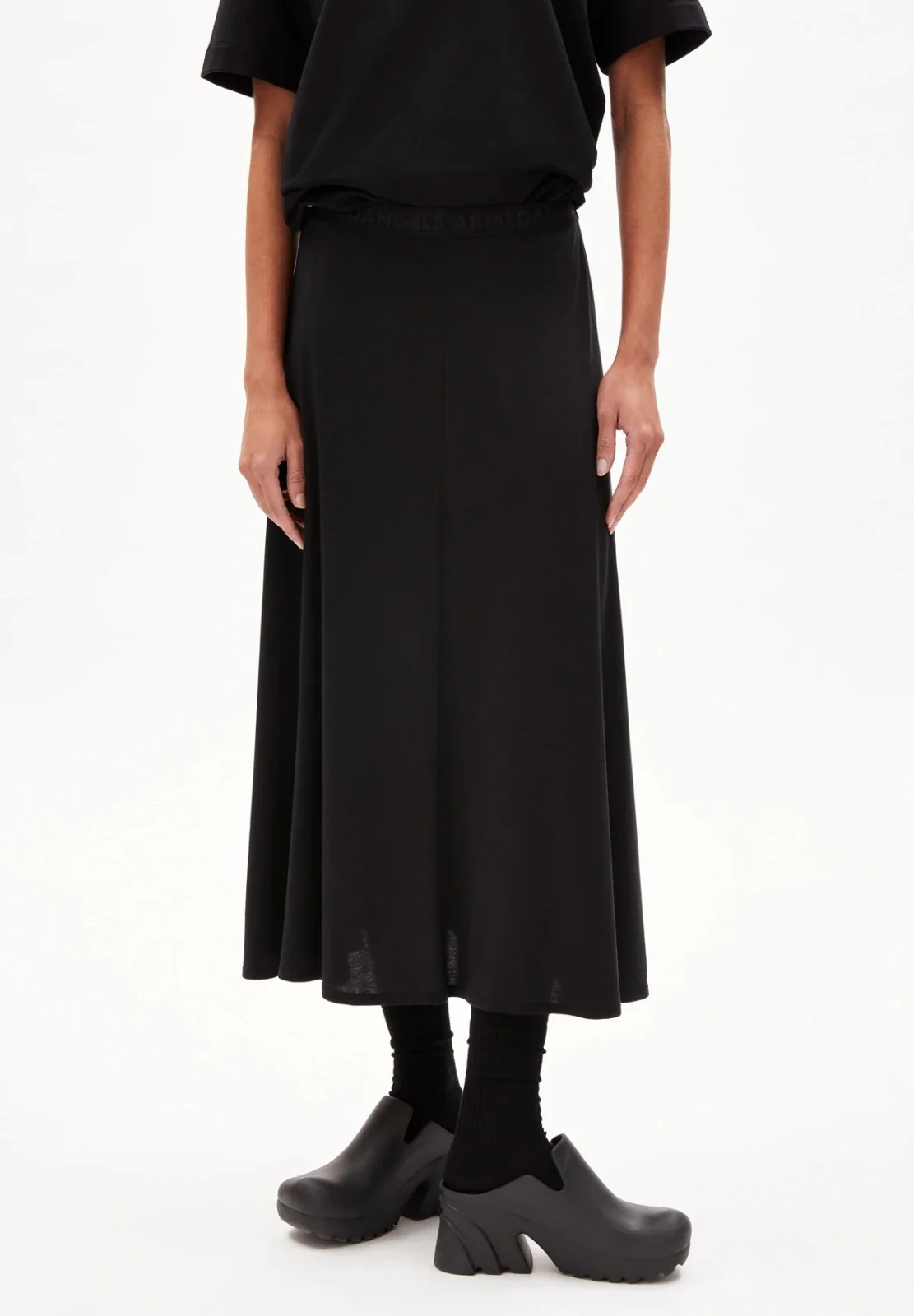 Eleganter Jersey-Midirock in klassischem Schwarz aus TENCEL™ Lyocell – weich fallend, bequem und vielseitig kombinierbar.