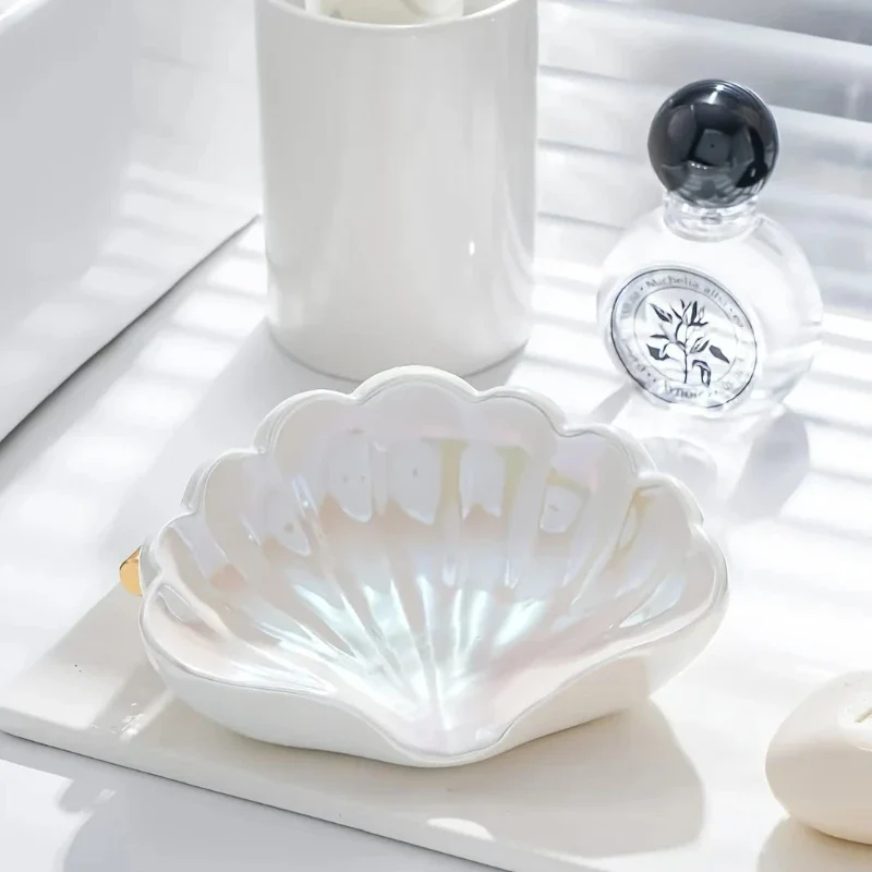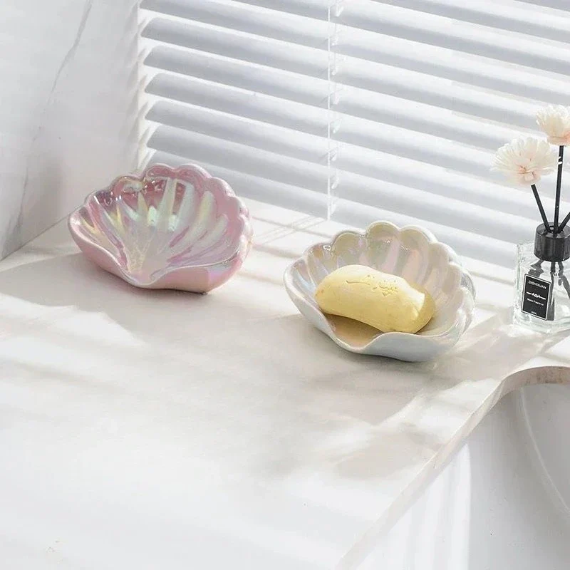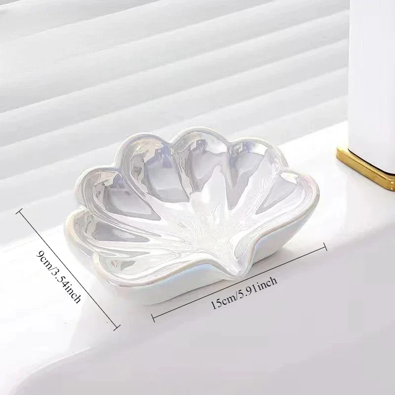 Diese elegante Seifenschale im Muschel-Look bringt maritimen Charme in Ihr Badezimmer oder auf Ihren Waschtisch. Sie kombiniert Ästhetik mit praktischer Funktionalität.