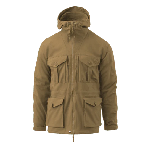 Die SAS Smock Jacke vereint Tradition und Funktionalität! Es handelt sich um eine neue, verbesserte Version, die klassische Elemente beibehält, aber einen Hauch von Vintage-Stil hinzufügt. Diese Jacke besteht aus Duracanvas-Material, das gewachst werden kann, um den Schutz vor leichtem Regen und Schnee zu erhöhen. Mit ihrem schlichten Design und den verstellbaren Teilen, darunter eine zweistufige Kapuze und zwei Bündchen, ist diese Jacke vielseitig und kann bei jedem Wetter getragen werden. Noch besser: Es verfügt über mehrere Taschen in verschiedenen Stilen und Verschlussarten, die sich sowohl für den täglichen Gebrauch als auch für Outdoor-Abenteuer eignen. Die SAS Smock Jacke ist ein militärisch inspiriertes Stück mit einer reichen Geschichte und praktischen Anwendungen für Bushcraft oder andere Aktivitäten. Entdecken Sie Ihre abenteuerliche Seite mit dieser einzigartigen und funktionellen Jacke!