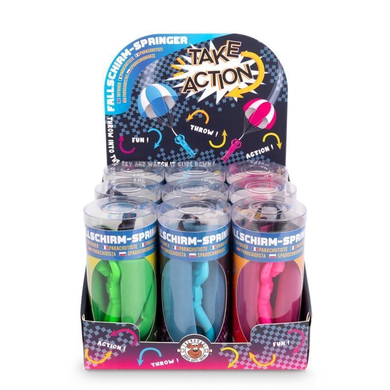 Erleben Sie aufregenden Spielspaß mit dem TAKE ACTION Wurf-Fallschirmspringer! Dieses spannende Wurfspiel ist perfekt für Kinder, die gerne draußen spielen und Abenteuer erleben. Der Fallschirmspringer ist in drei leuchtenden Farben erhältlich – Grün, Blau und Pink – und bringt Spaß und Bewegung in jeden Tag.