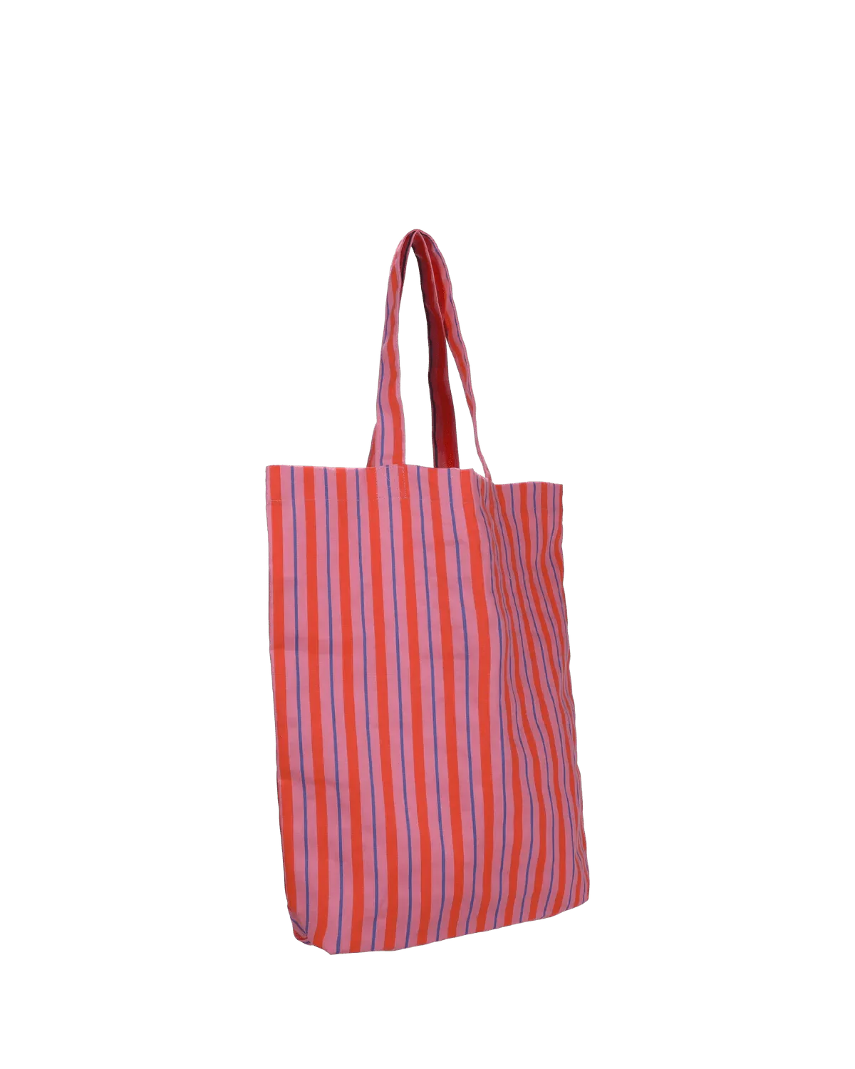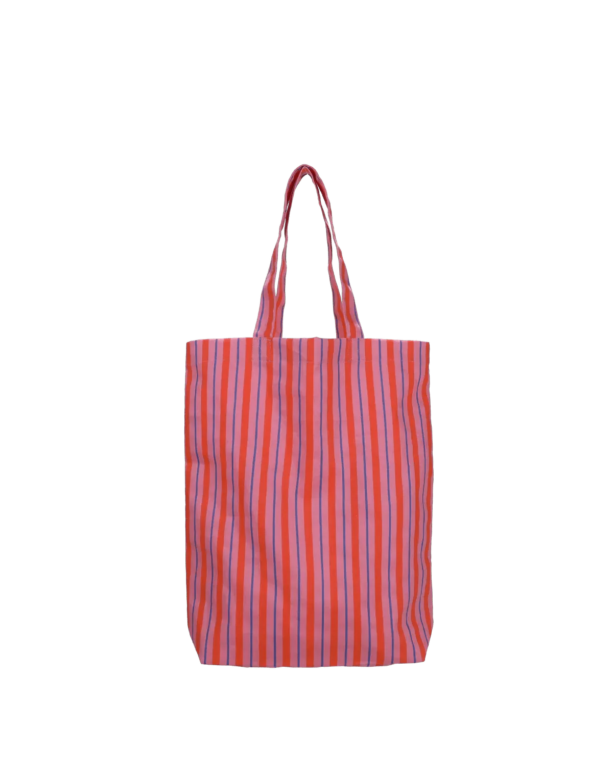 Balanced Stripes in Rosé, Blutorange und Blau – eine stilvolle Tragetasche aus robuster Baumwolle mit einzigartigem Muster für den perfekten Look.