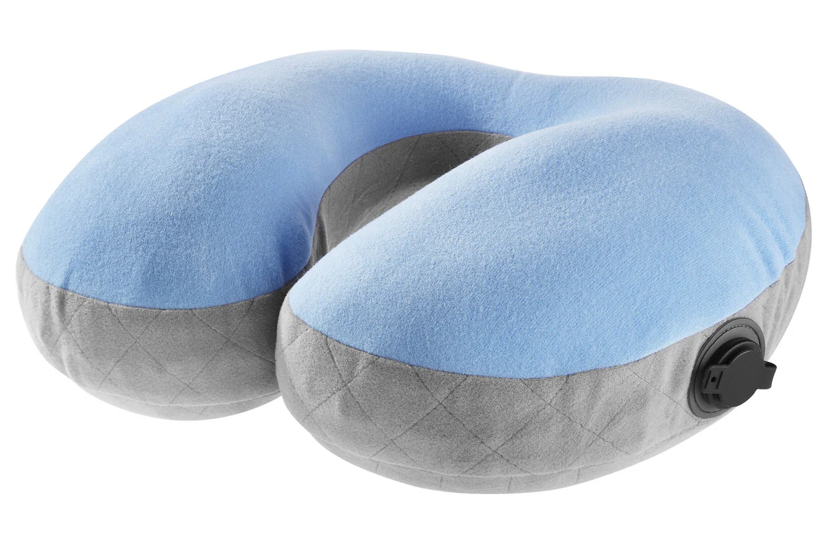 Bequeme, kompakt verpackbare Nackenstütze mit aufblasbarem Luftkern, synthetischer Füllung und weicher Mikrofaserhülle. Ideal auf Flugreisen, im Bus und in der Bahn.