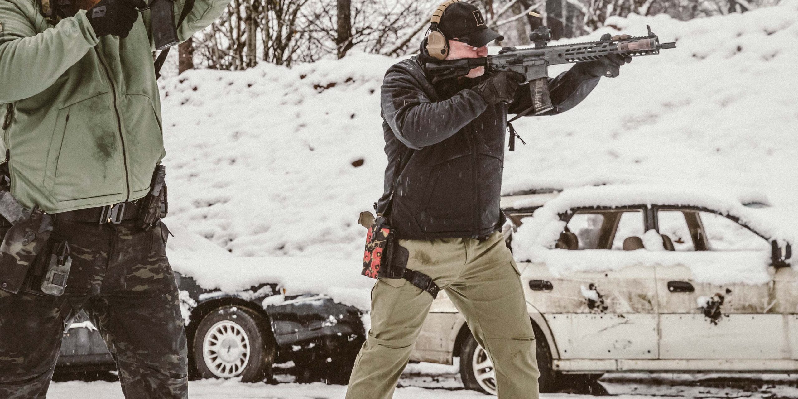 - Oberschenkelladungen mit speziellen Taschen für Gewehr- / Pistolenmagazine