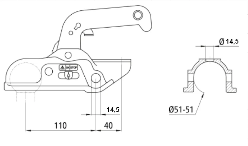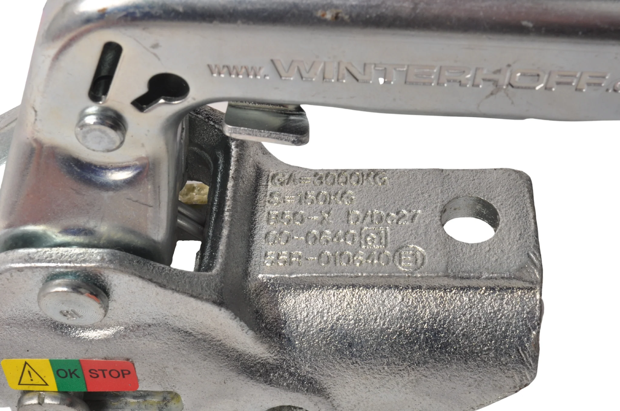 Starke Winterhoff Kugelkupplung aus Gusseisen. Die Montage ist sowohl horizontal als auch vertikal M14. Diese Kugelkupplung passt auf eine 50 mm runde Zugstange.